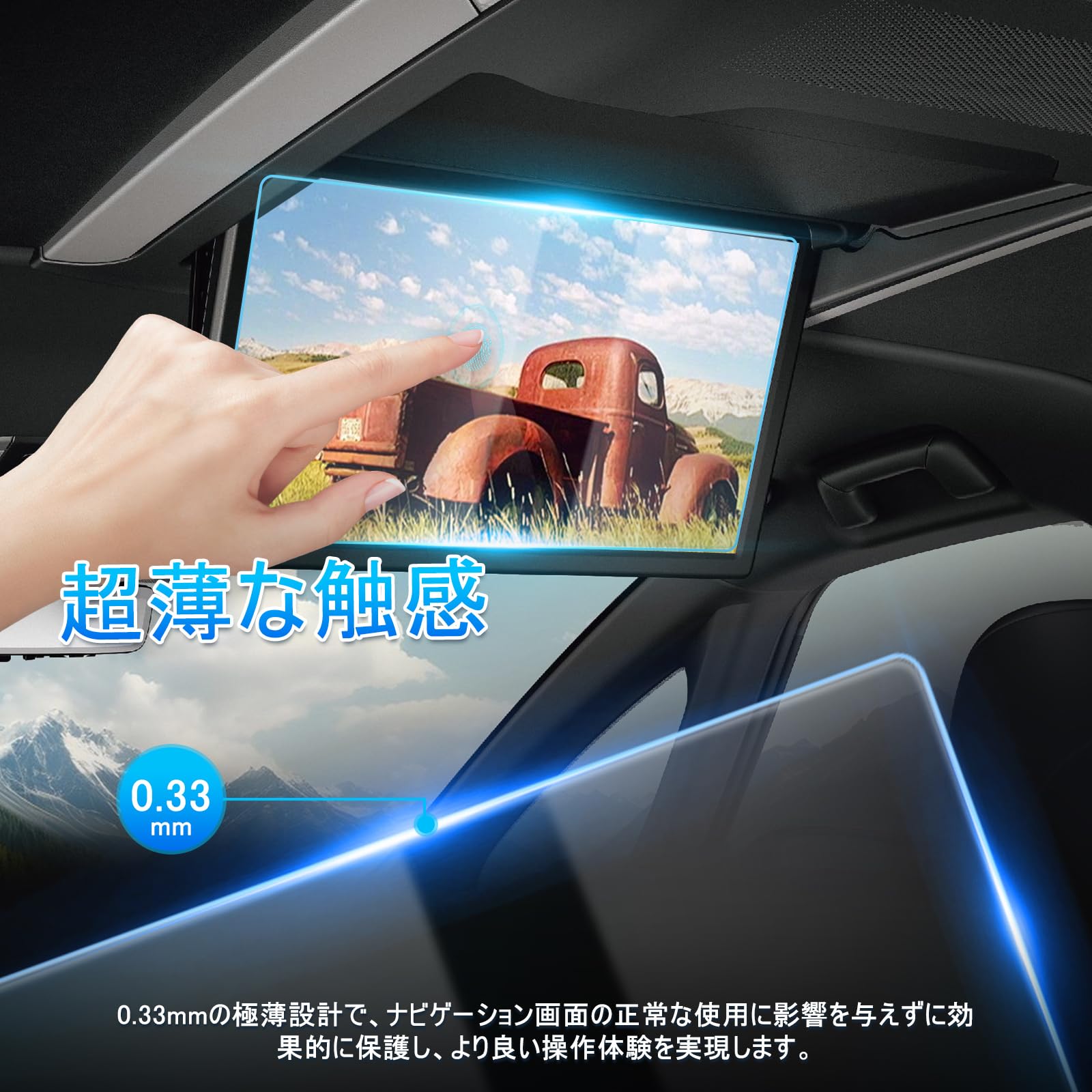 ナビゲーション操作の滑らかさを追求し、高感度なタッチ反応機能を備えています。薄膜ながらも、迅速な反応と正確なコマンド認識を実現し、ドライブ中の操作性を飛躍的に向上させます。