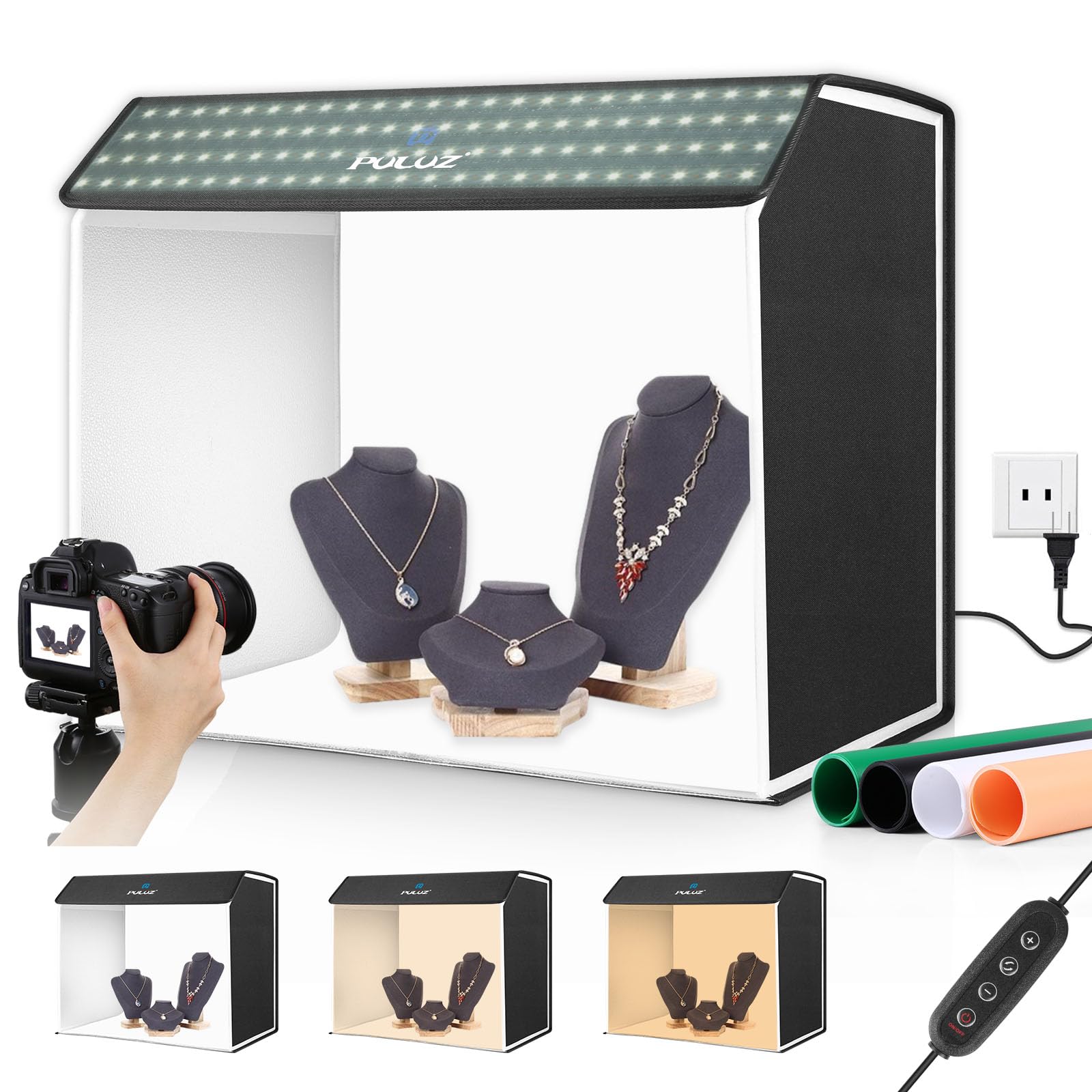PULUZ 撮影ボックス 60×50×40cm 撮影ブース 折り畳み 物撮りセット 672個LEDビーズ/超高輝度/3色温度/無段階調光/4色PVC背景/ディフューザー付き 卓上写真撮影キット 物撮り用ボックス プラモデル 撮影ブース 携帯便利&組立簡単&収納便利 自宅撮影台 撮影用アイテム (60×50×40cm)