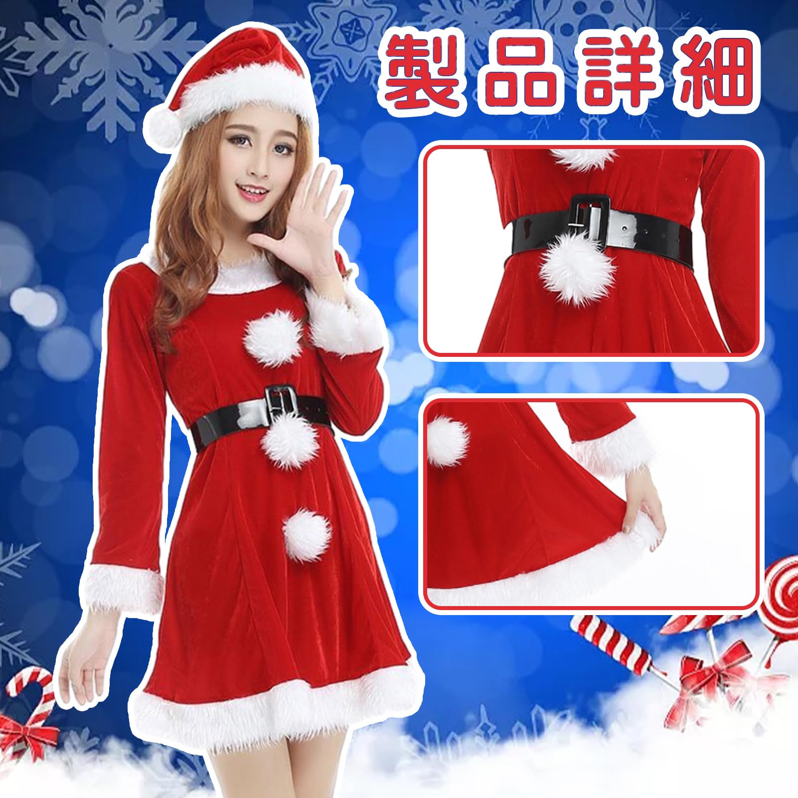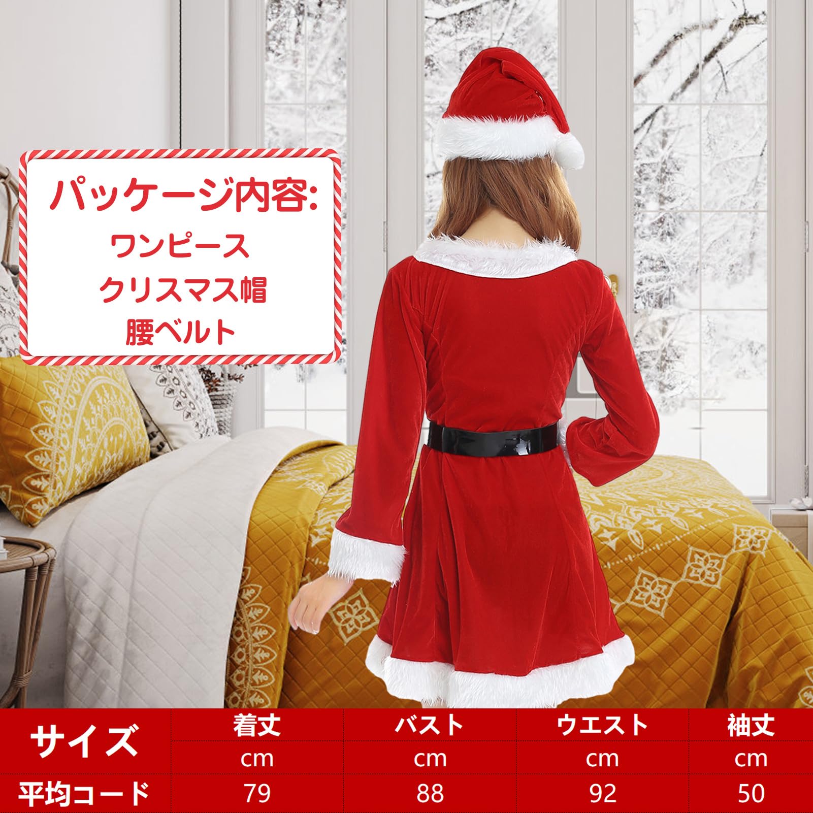 パッケージの内容は「クリスマス帽子+ワンピース+ベルト」、3点セットです。