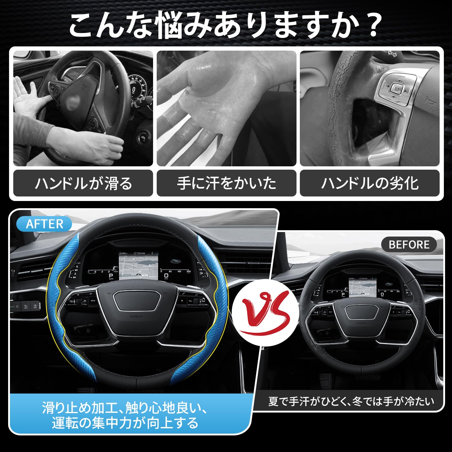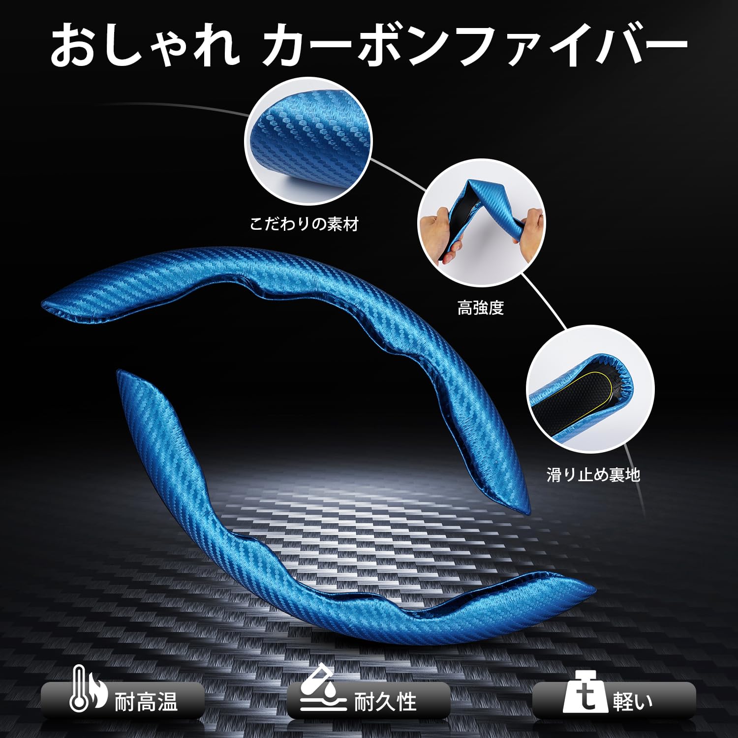 LIMSTYLE ハンドルカバー 車用ステアリングカバー 汎用 軽自動車 普通車 カーボン調 先端素材 レザー 軽い 滑りにくい キズ防止 汚れ防止 耐久性 はめやすい ピッタリ 無臭無毒 (カーボン調・ブルー)