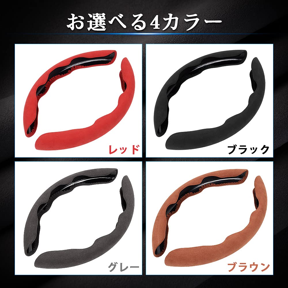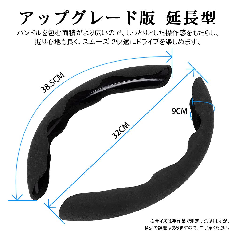 Cartist ハンドルカバー 車用 ステアリングカバー 汎用 軽自動車 普通車 おしゃれ 汚れ防止 滑り防止 オールシーズン対応 ハンドル 保護カバー カスタム 内装パーツ アクセサリー 2ピースセット 取付簡単 メーカー直営 (ブラック)