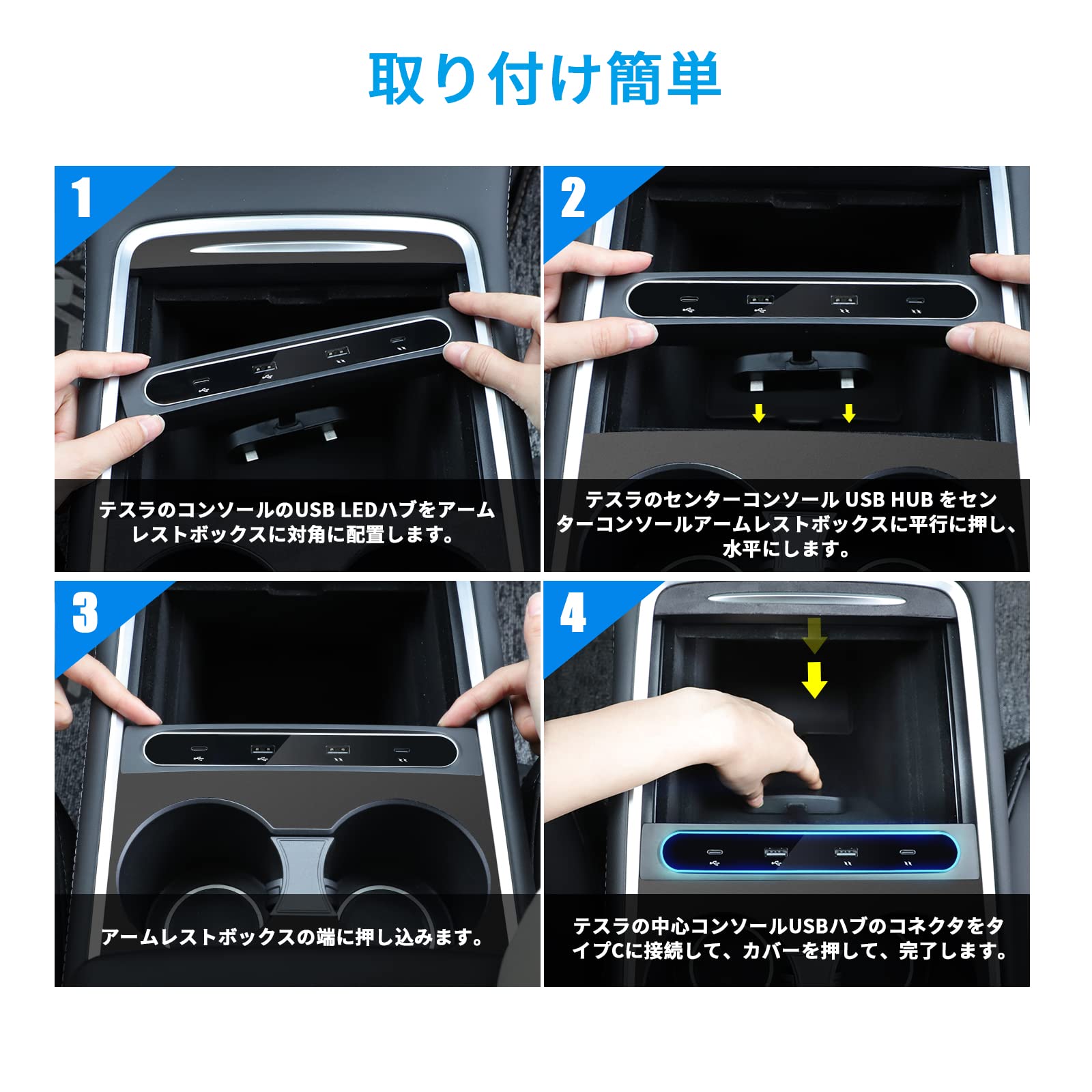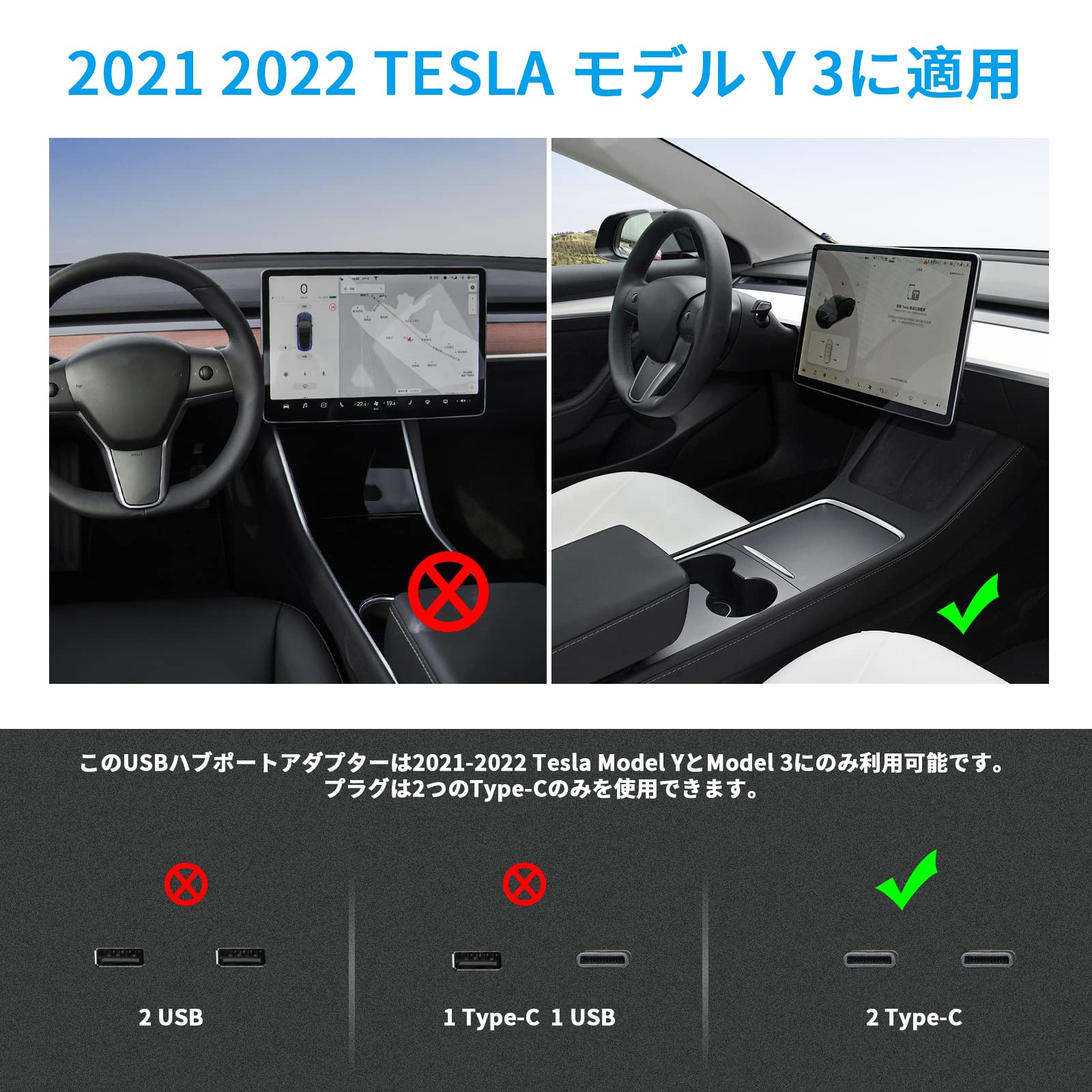 注意: このUSBハブは、2021-2022 Tesla Model YとModel 3のみに適用しています。プラグは2つのType-Cのみが使用できます。