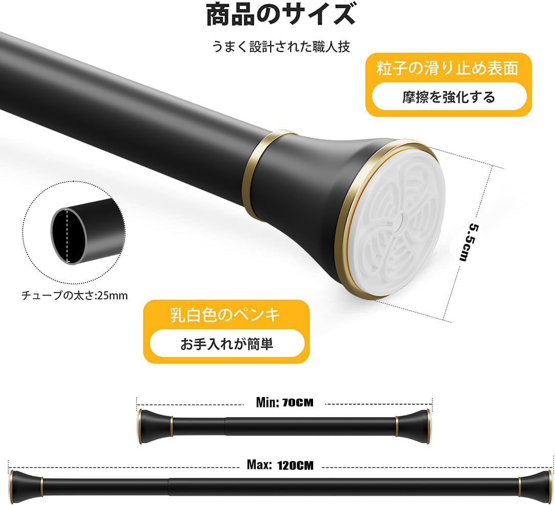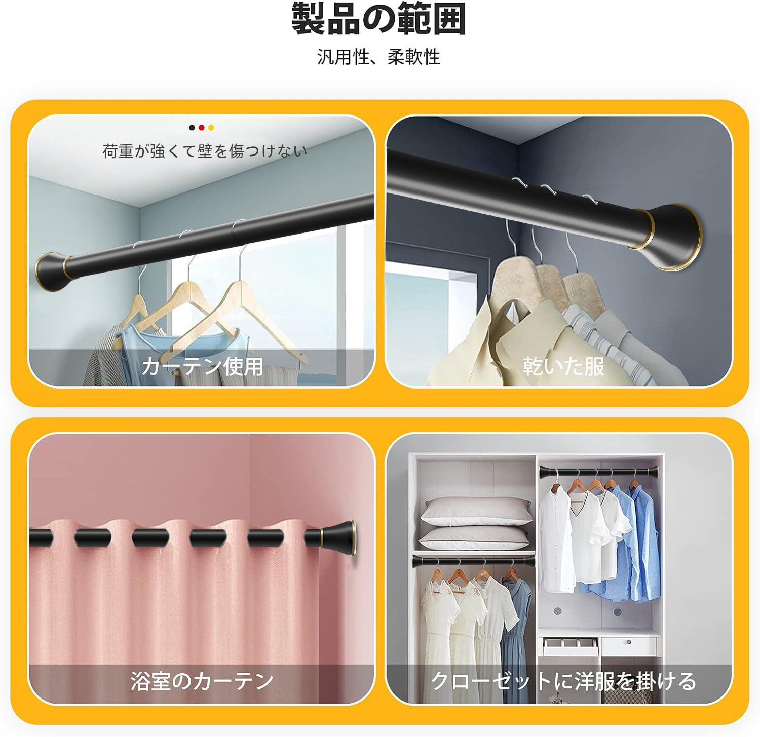クローゼットロッド 強い負荷 ドリル不要 カーテンロッド シャワーカーテンロッド 洗濯干し 室内 屋外 強力 突っ張り棒