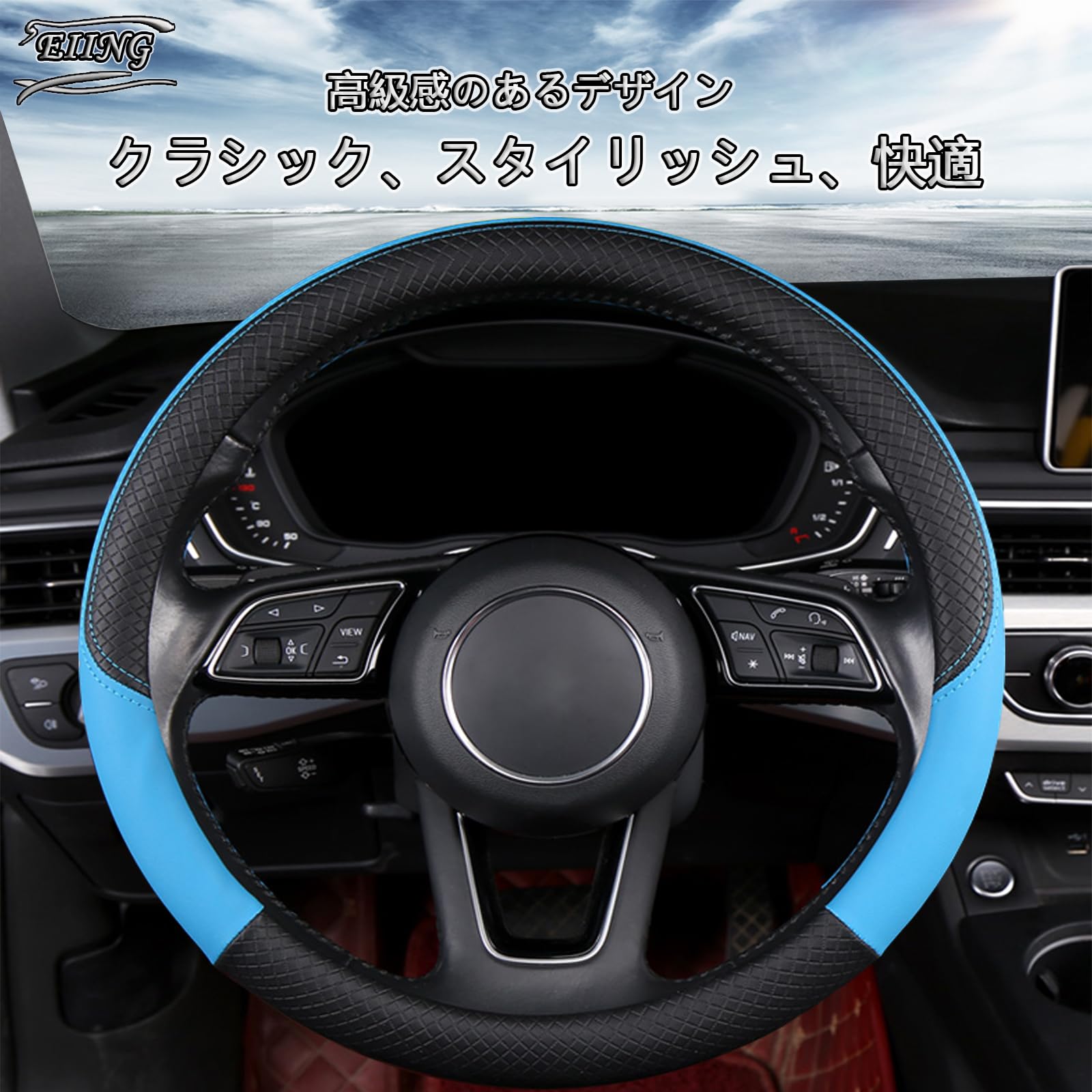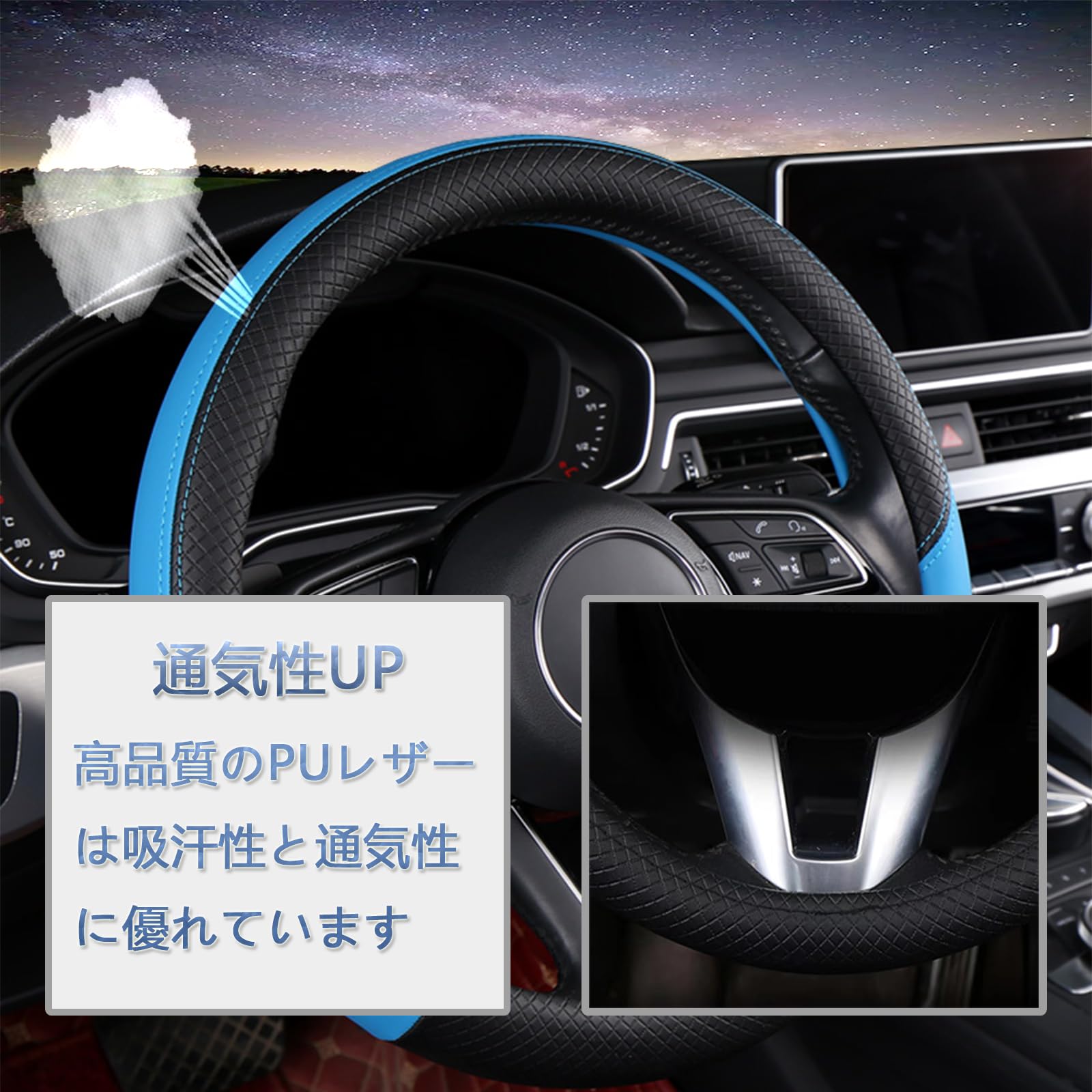高品質の耐摩耗性PUレザーを使用しています、水や汗に強く、通気性もよく、異臭もありません。手にしっくりと馴染むPUレザーの感触がしっとりとした操作感をもたらし、握り心地の良いPUレザーでオールシーズン快適にドライブを楽しめます。