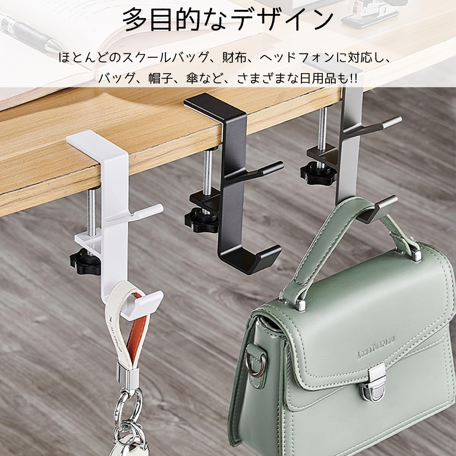アルミニウム合金素材製のバックパックフックは丈夫で信頼性が高く、洗練されています。デスク用ハンドバッグフックは傷や錆びにくく、再利用可能でお手入れも簡単です