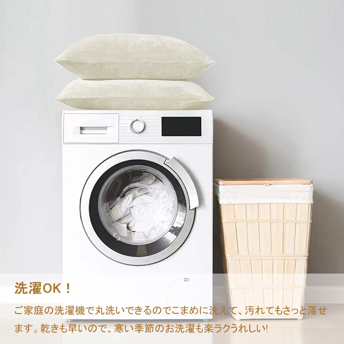 お手入れ方法 :水洗いにも強い、汚れを気にせずに、ご自宅の洗濯機で丸洗いできるので、いつでも清潔と快適に保てます。
