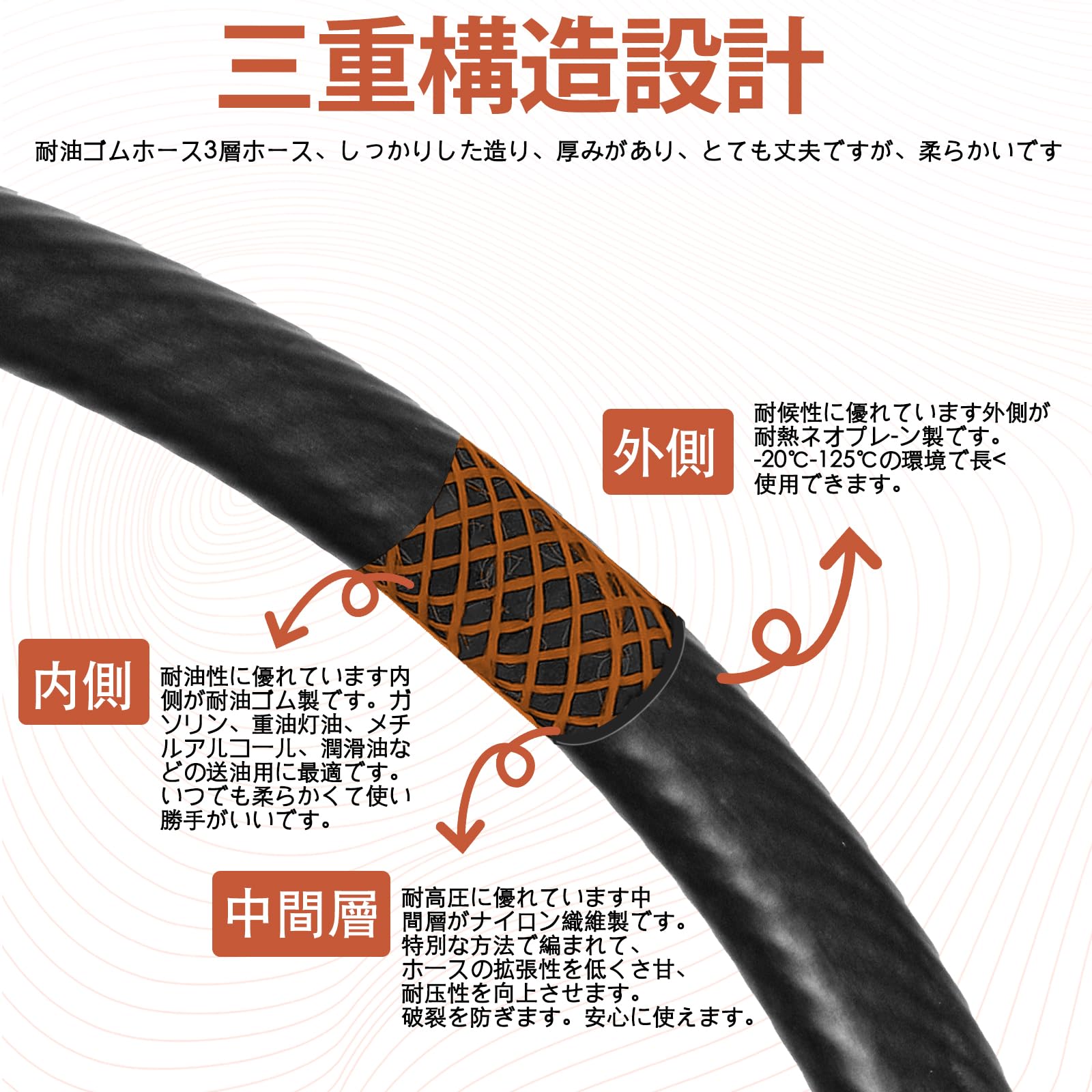 ガソリン、重油、エタノール、メタノール、エンジンオイル、灯油、潤滑油などの送油用に最適ます。自動車、バイク、トライサイクルなどの燃料ホースの交換に使われます。