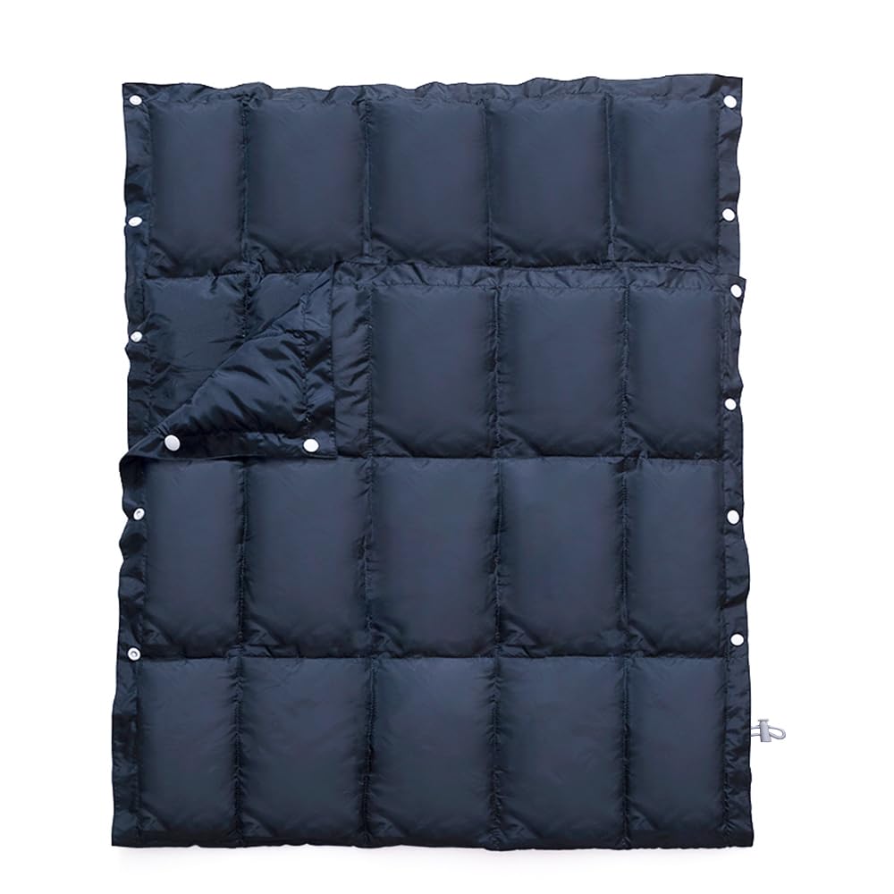 KOKOSUN ダウン ブランケット ひざ掛け 肩掛け 腰巻き 多機能 防寒 冷房対策 スナップボタン付き オフィス 家庭用 車中泊 アウトドア キャンプ 旅行用 収納袋付き (ダークブルー, 140*60cm)
