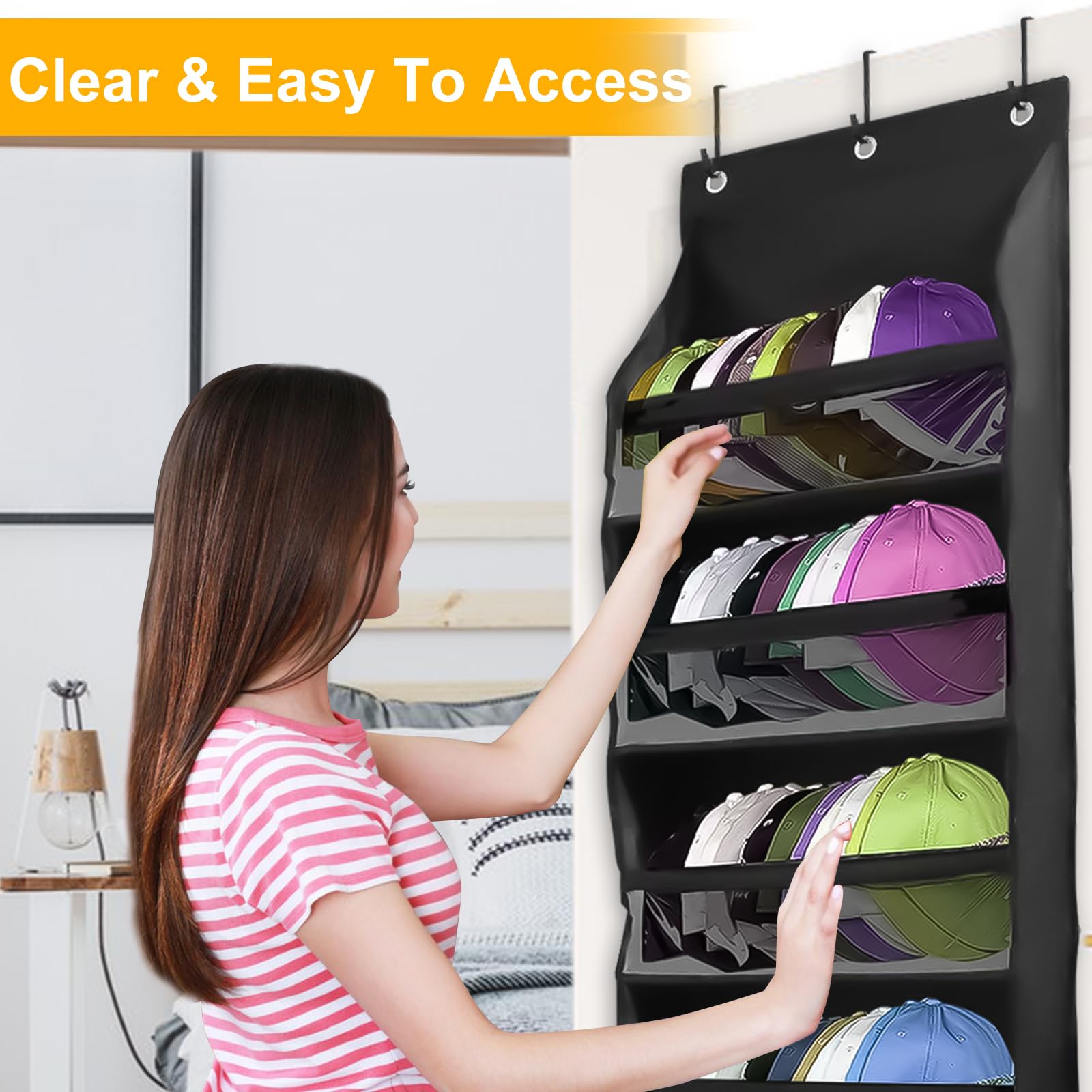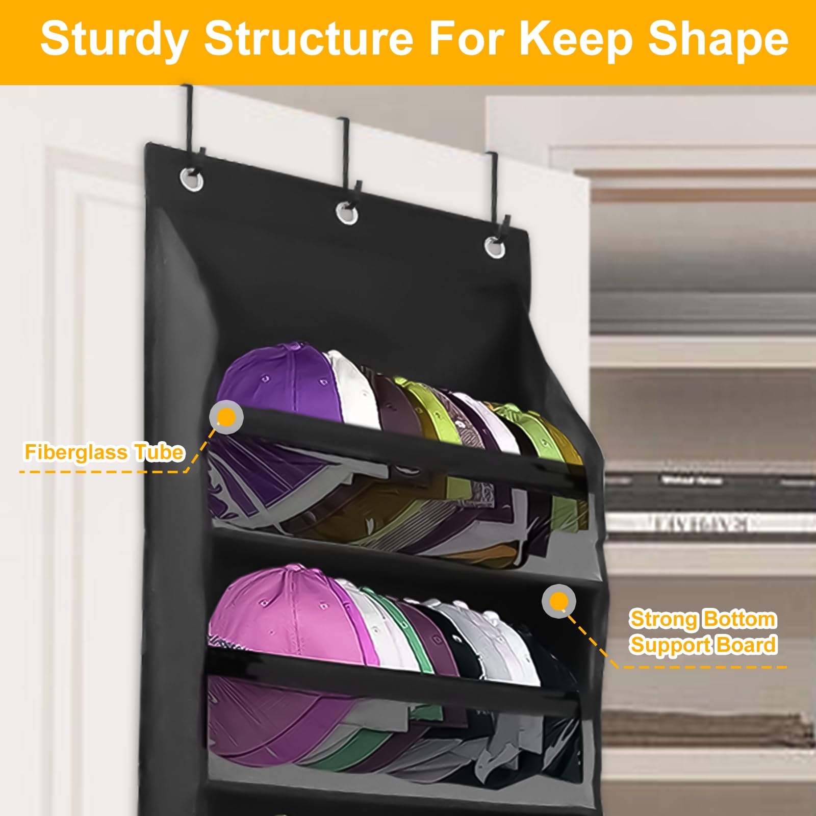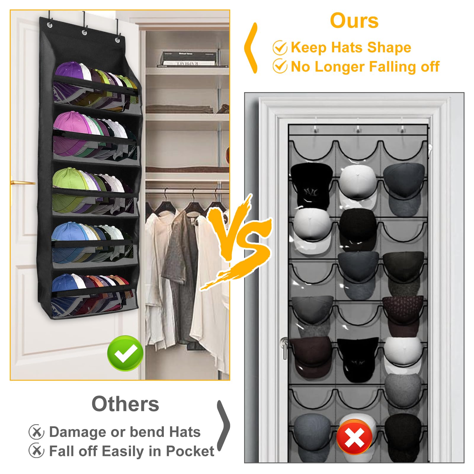 帽子収納バッグ、吊り下げ式オーガナイザー、フック付き帽子収納オーガナイザー、取り付け簡単、クローゼット壁面用 帽子や小物収納オーガナイザー