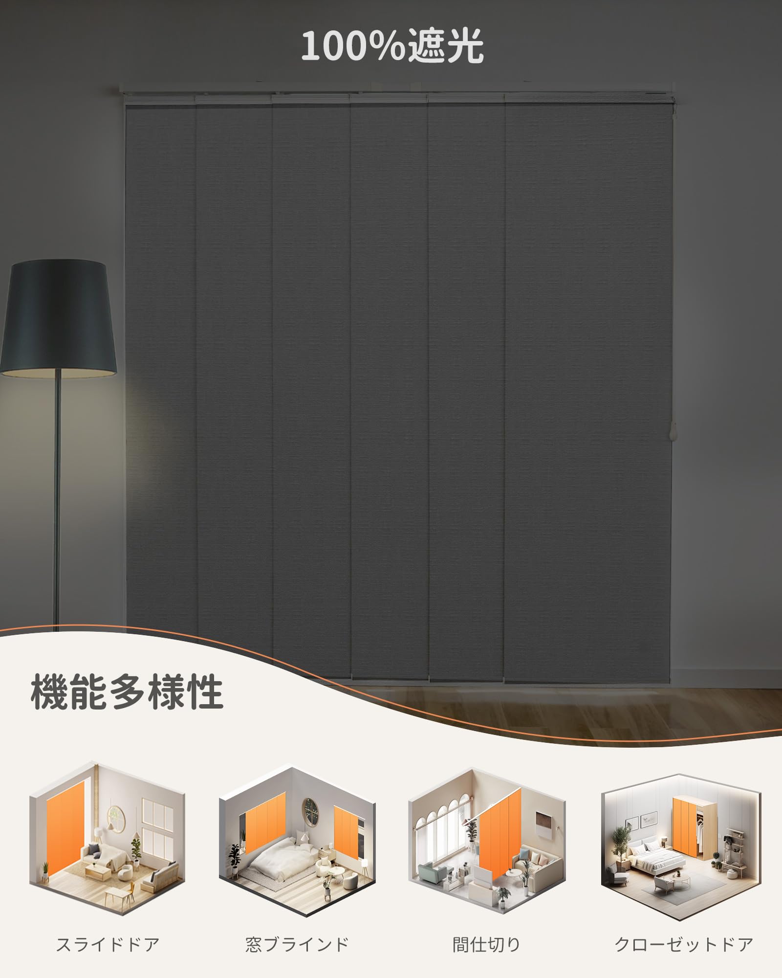 スライドパネル調節可能 パネルブラインドカーテン 一級遮光 トラックブラインド 間仕切り 幅107~188cm 丈244cm ダークグレー