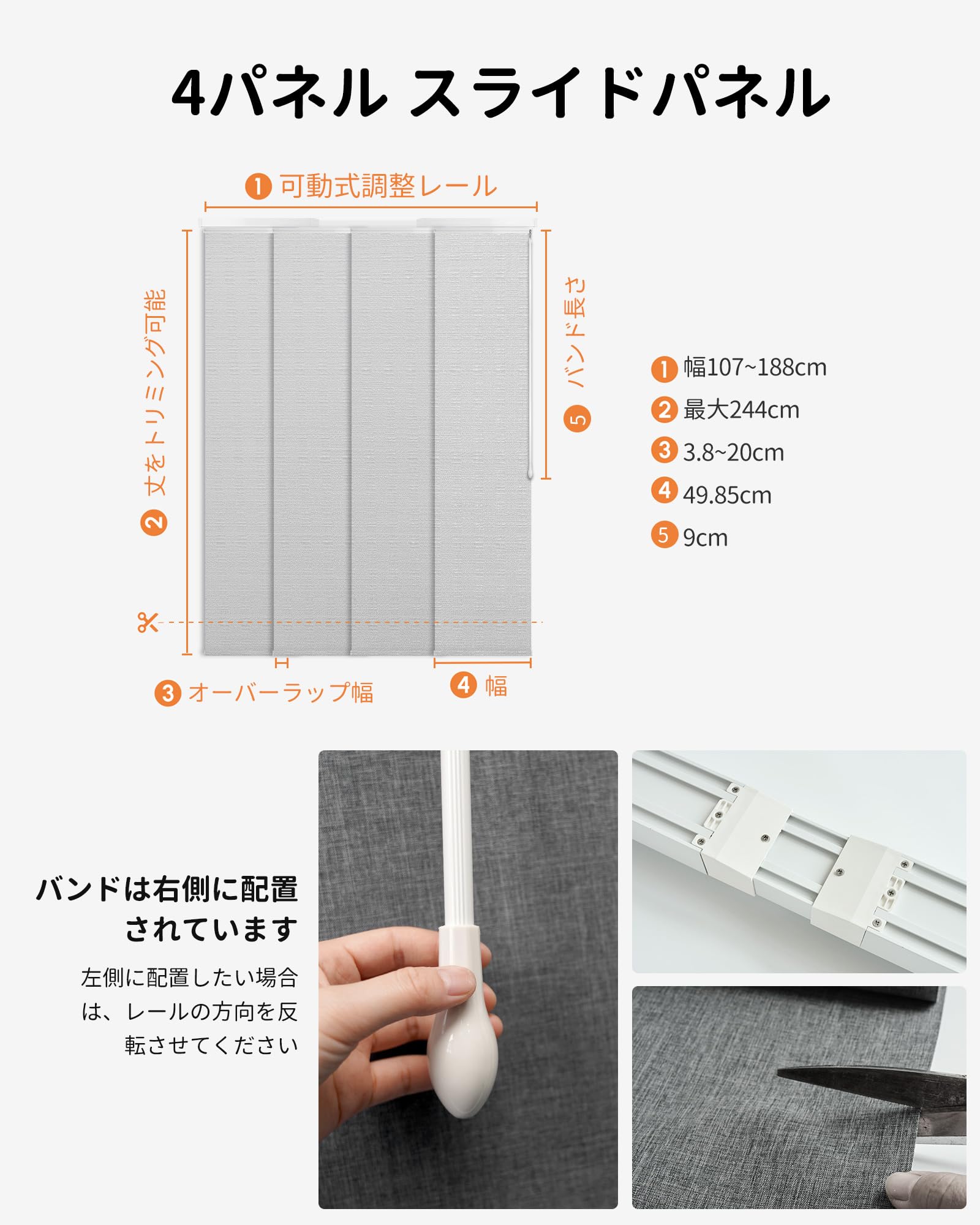 スライドパネル調節可能 パネルブラインドカーテン 一級遮光 トラックブラインド 間仕切り 幅107~188cm 丈244cm ライトグレー