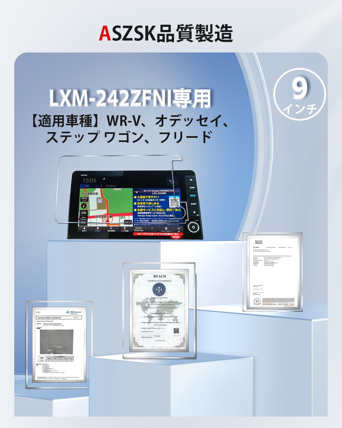 ■ナビフィルムサイズ:9インチ(1枚入り)、 9インチ Honda CONNECTナビ LXM-242ZFNi専用 ガラスフィルム;
