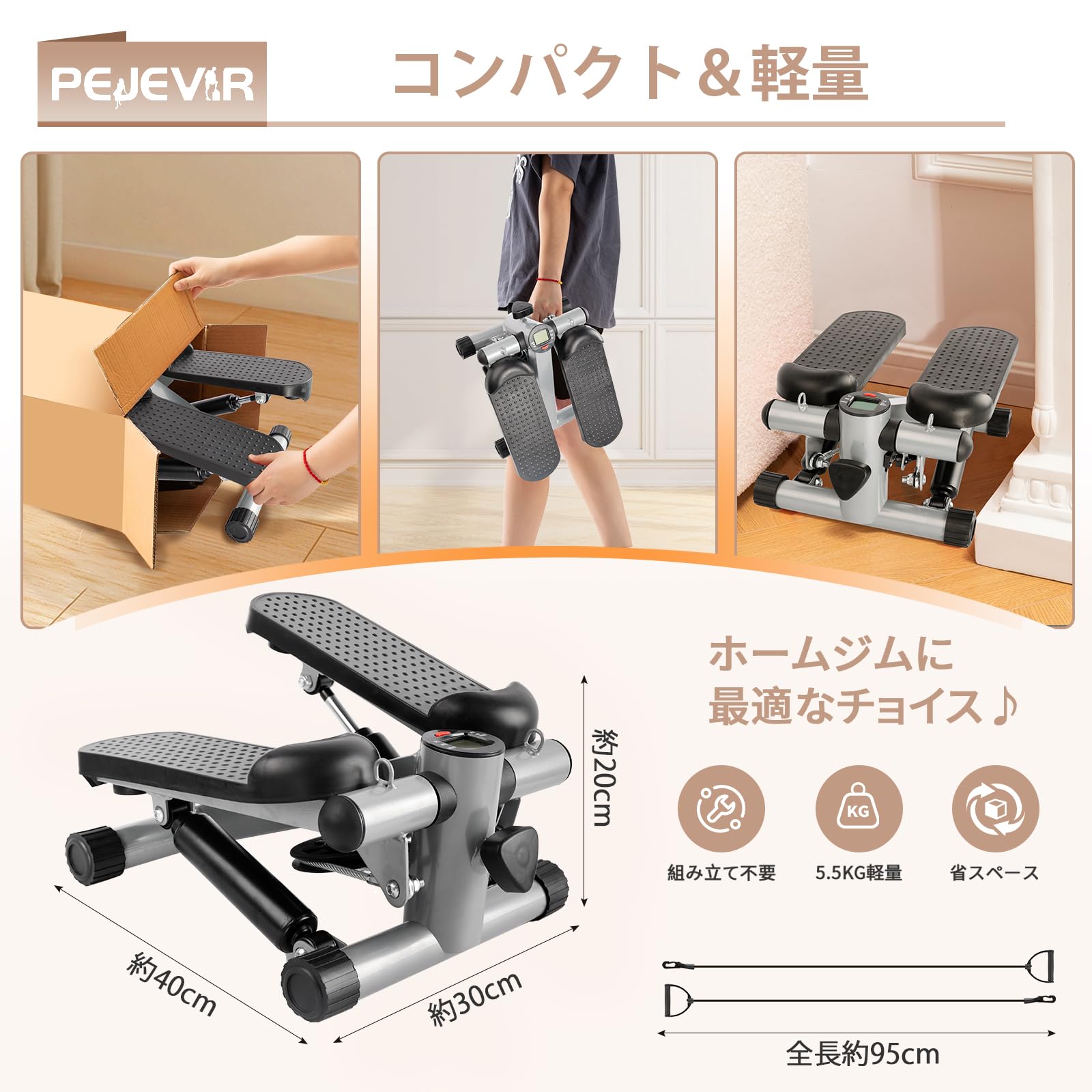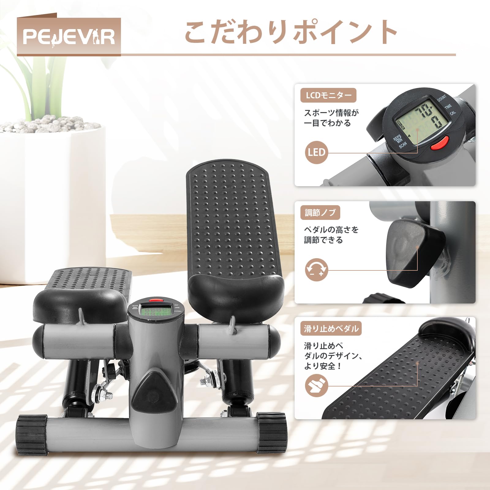 Pejevir 健康ステッパー 足踏み 静音設計 簡単 省スペース 有酸素運動 室内 フィットネス 器具 コンパクト 携帯便利 筋トレ
