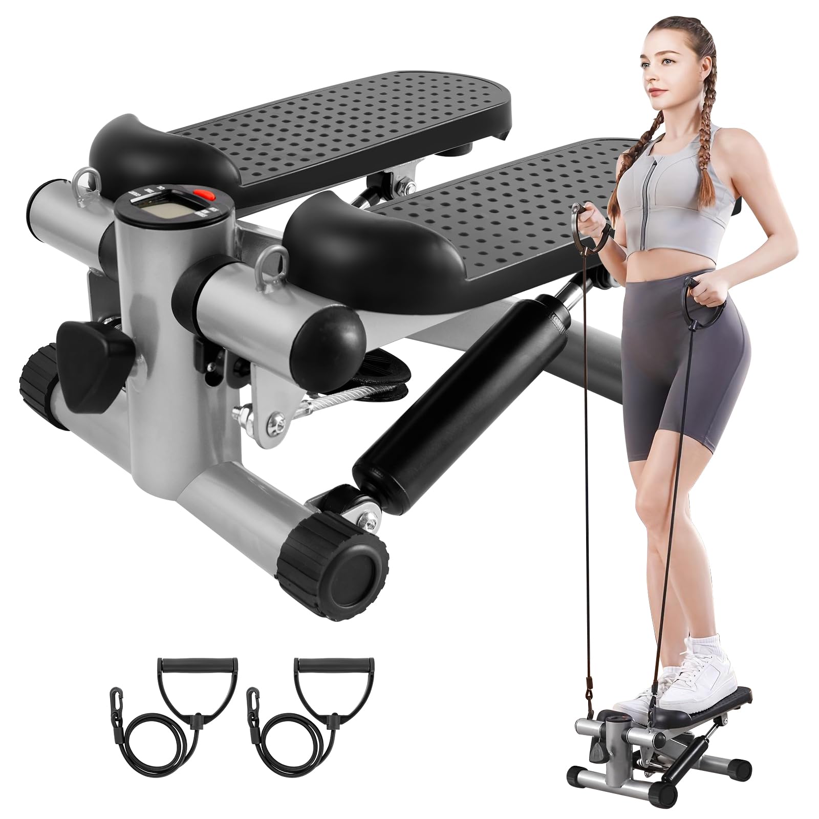Pejevir 健康 ステッパー 静音設計 負荷調節可能 足踏み トレーニングバンド&デジタルモニター付き ミニステッパー 筋トレ コンパクト 携帯便利 自宅トレ 有酸素運動 室内 健康器具 フィットネス 踏み台