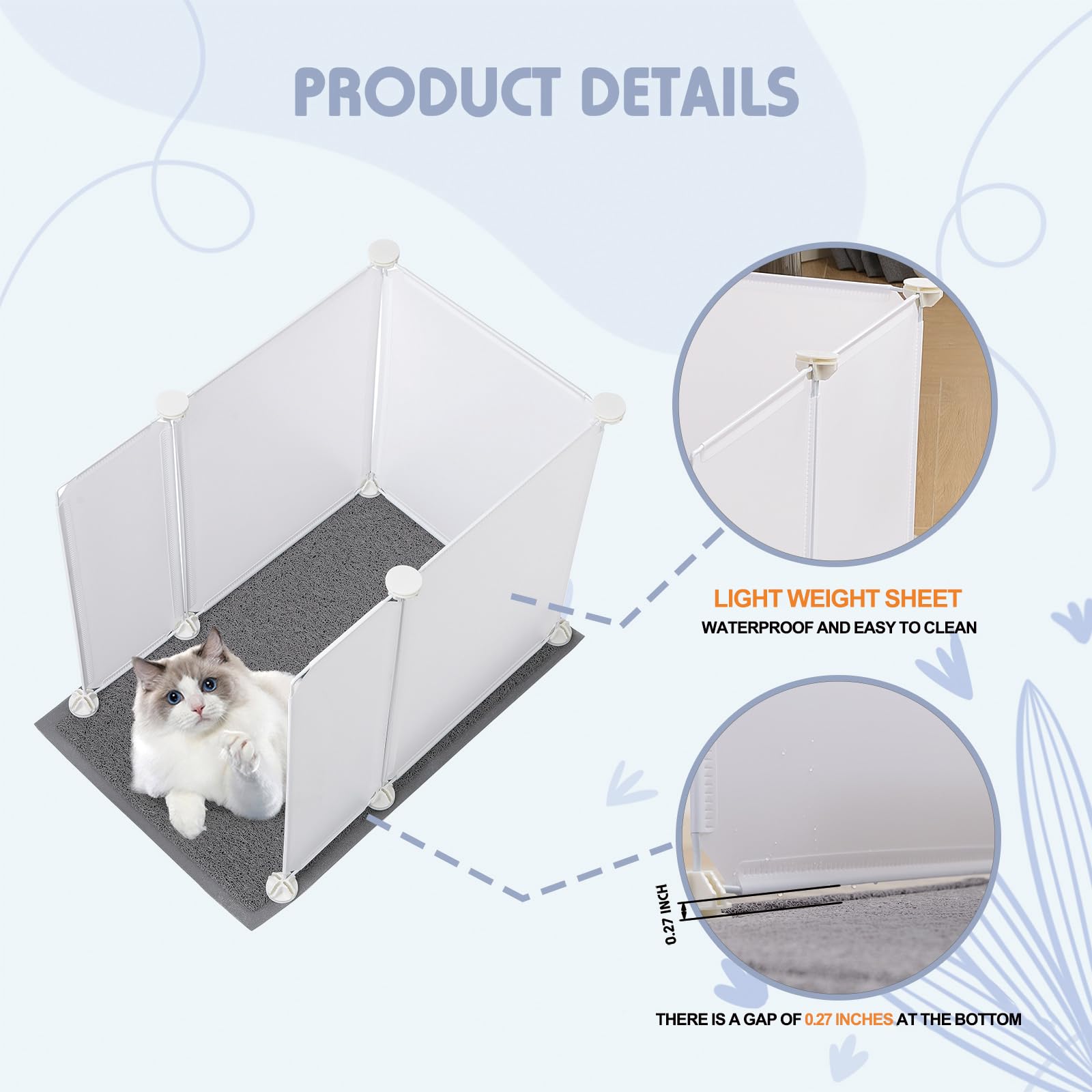MEEXPAWS 特大猫トイレボックス 囲いスプラッシュガード 27×20インチ | 大型猫用トイレマット | お手入れ簡単 (ホワイト)…
