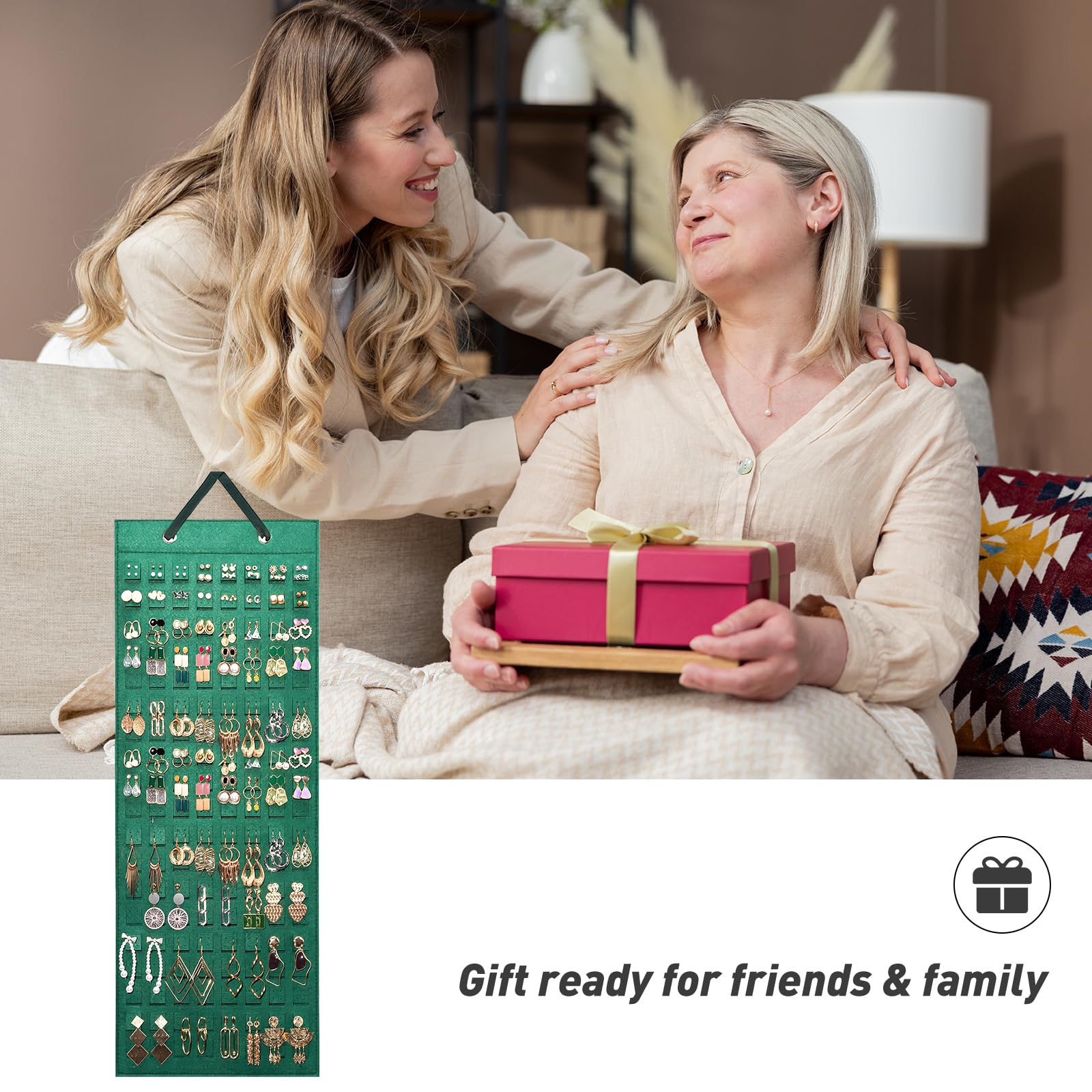 Lolalet アクセサリー収納 ウォールポケット イヤリング収納 最大304ペア収納可能 吊り下げ式 大容量 フェルト製 ピアス収納 - エメラルド・1個