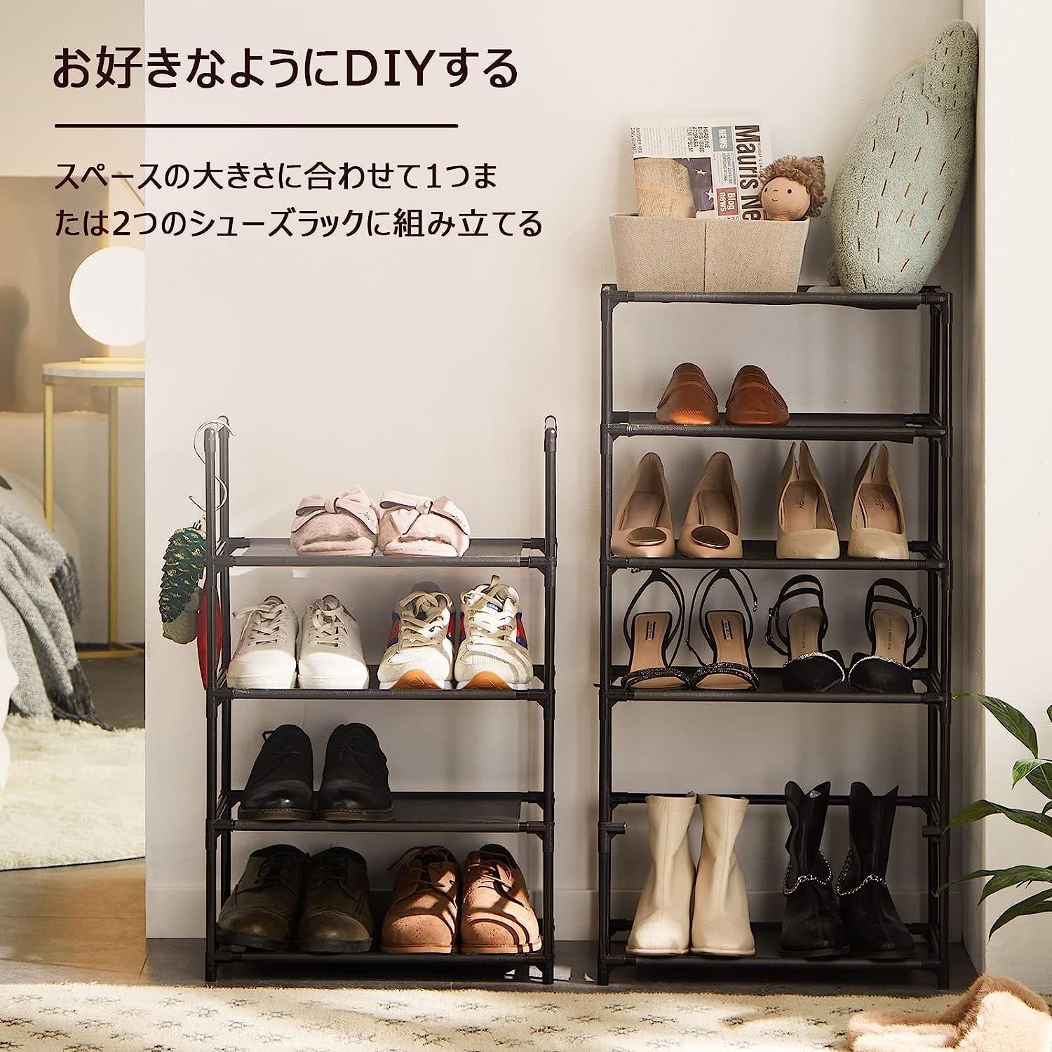 APICIZON シューズラック 靴収納 シューズラックスリム 玄関に靴を効率収納 靴だな 棚 省スペース 下駄箱 不織布 鉄パイプ 廊下 アパート用 (ブラック、10段)