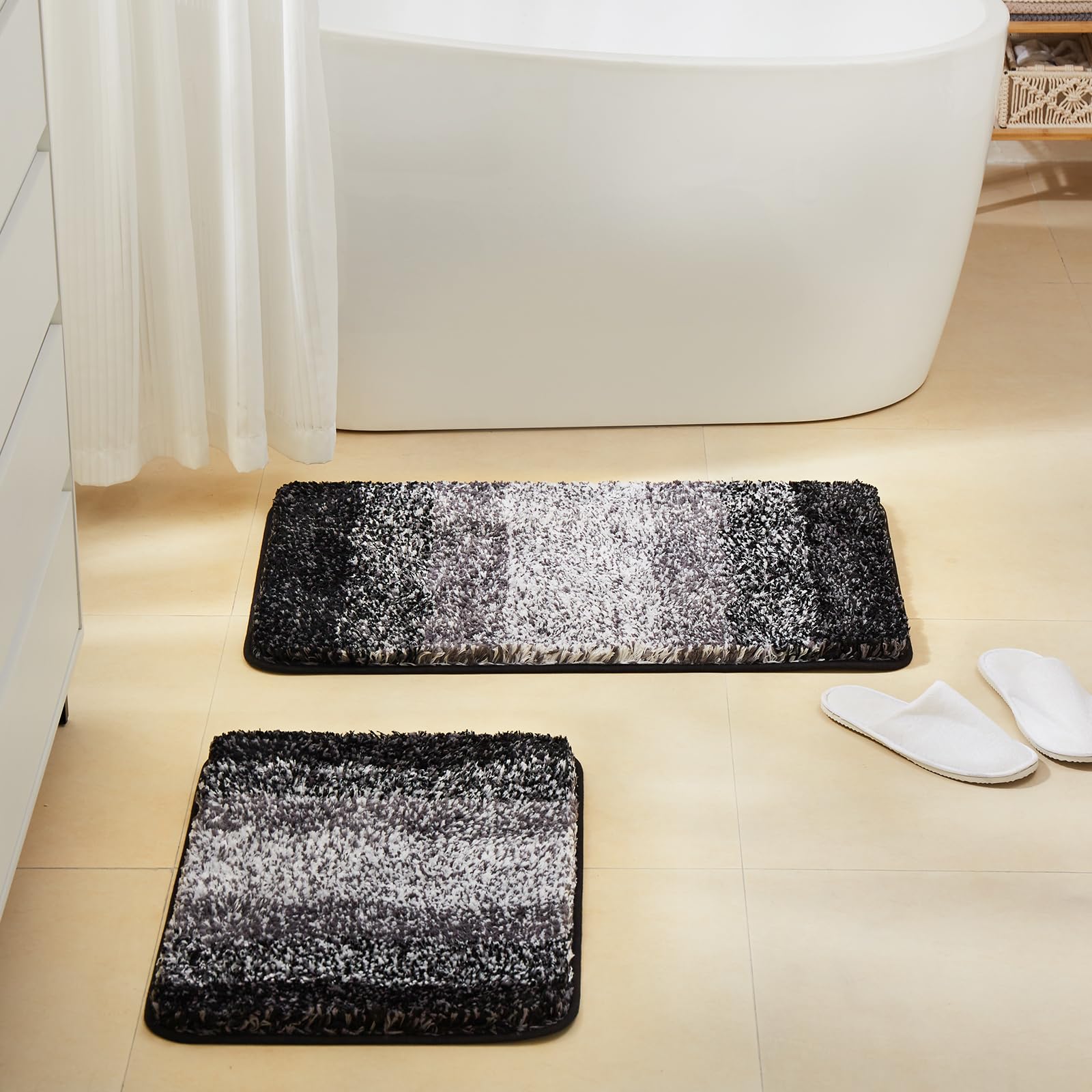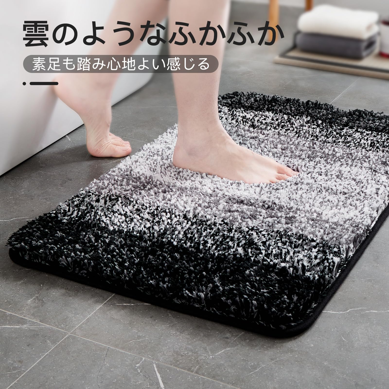 TECHMILLY バスマット 大判 速乾 洗える お風呂マット 滑り止め 足拭きマット 吸水 ふわふわ マイクロファイバー 浴室 玄関 洗面所 マット 2セット ブラック