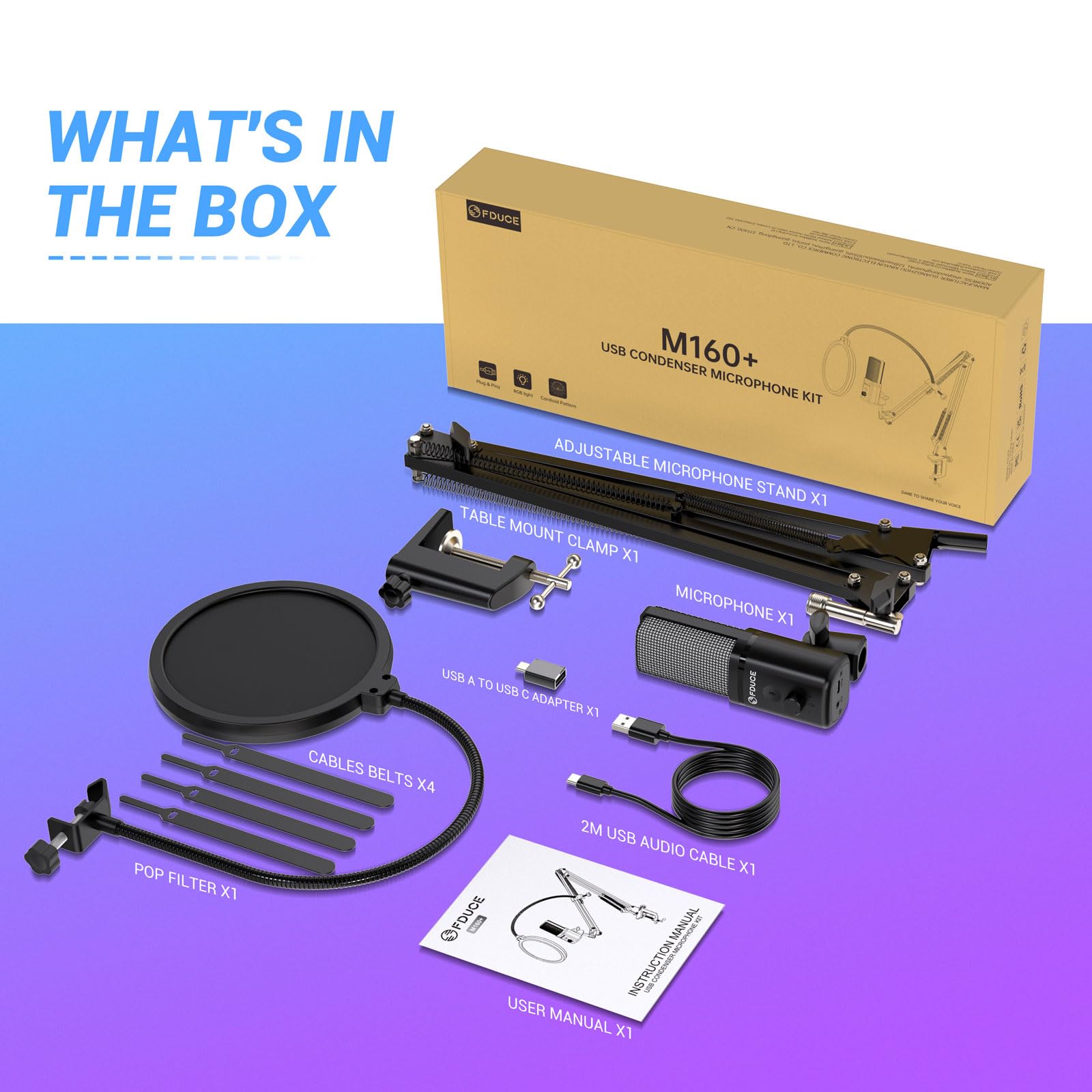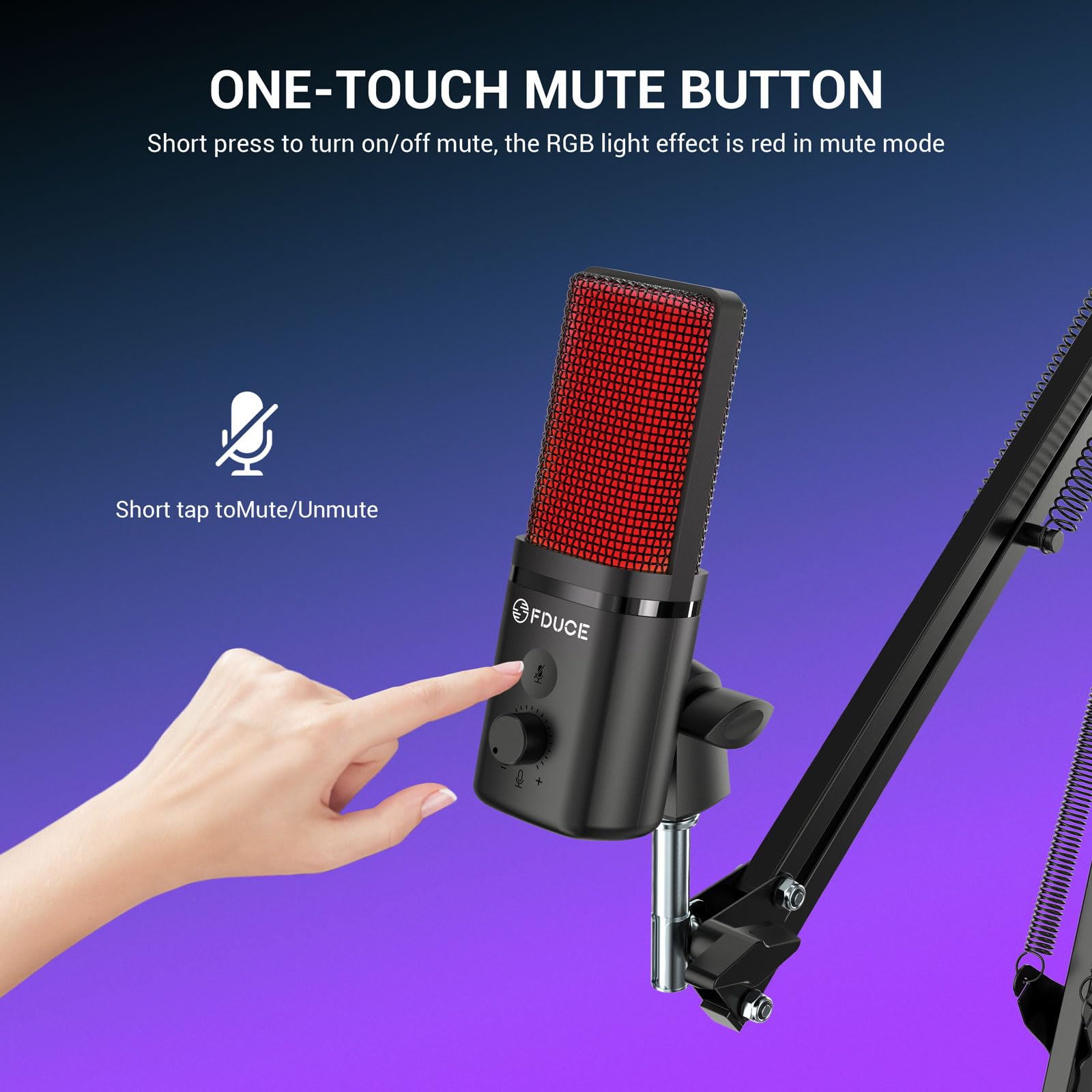 FDUCE ゲーミング USB マイク、ミュート、ゲイン、モニタリング、ブームアーム付き RGB コンデンサー マイク、ストリーミング、ポッドキャスト、Twitch、YouTube、PC、コンピューター、PS5 用 (M160+)