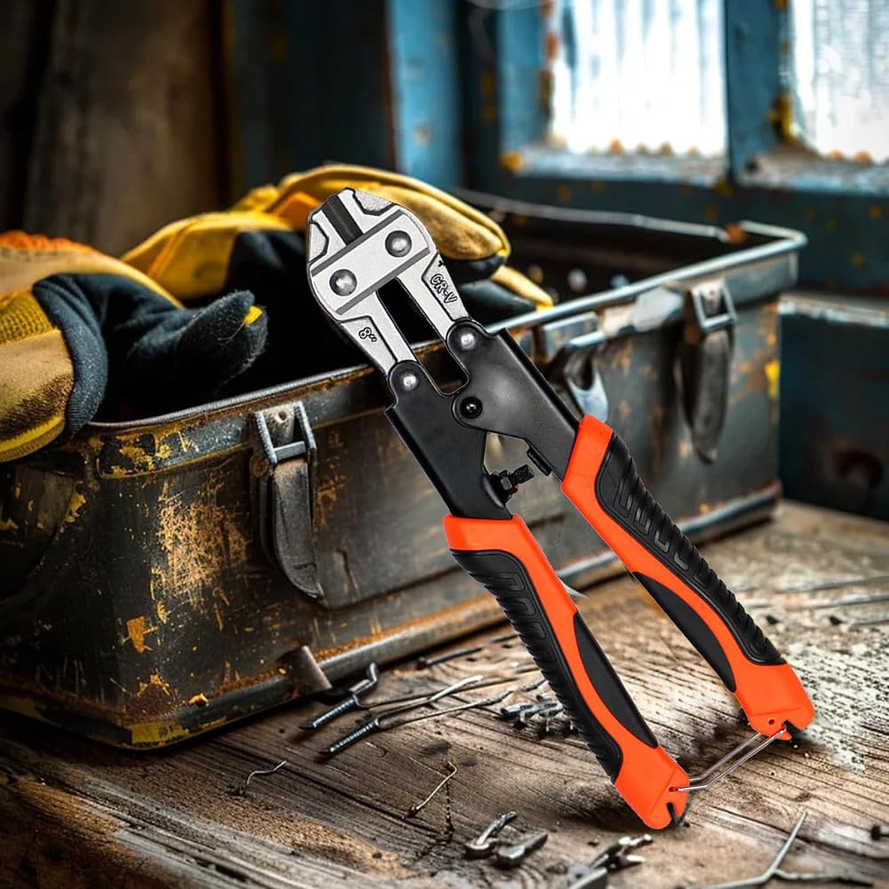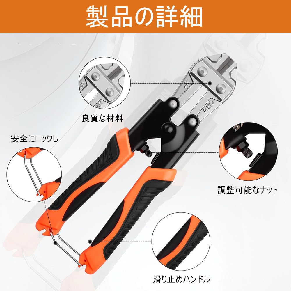 ボルトカッター 工具, 両手対応 ロック機能付き チェーン・ワイヤー切断用 オレンジ/ブラック