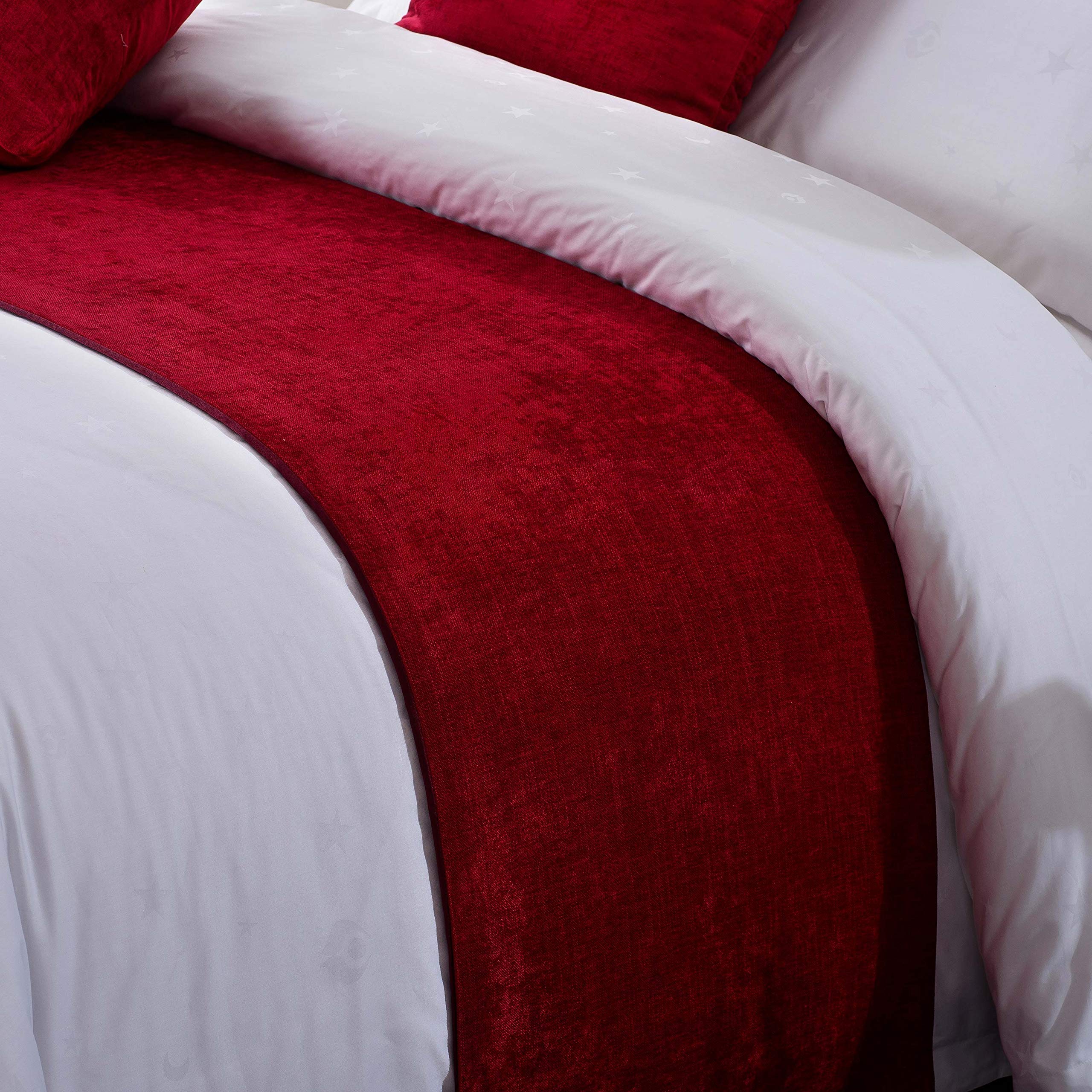 OSVINO シェニール ベッドライナー 無地 ベッドスロー 柔らかな肌触り シンプル デコレーション 雰囲気転換 年中通用 ホテル 客間 自宅 シングル/セミダブル/ダブル/クイーンダブル レッド ダブル240x50cm