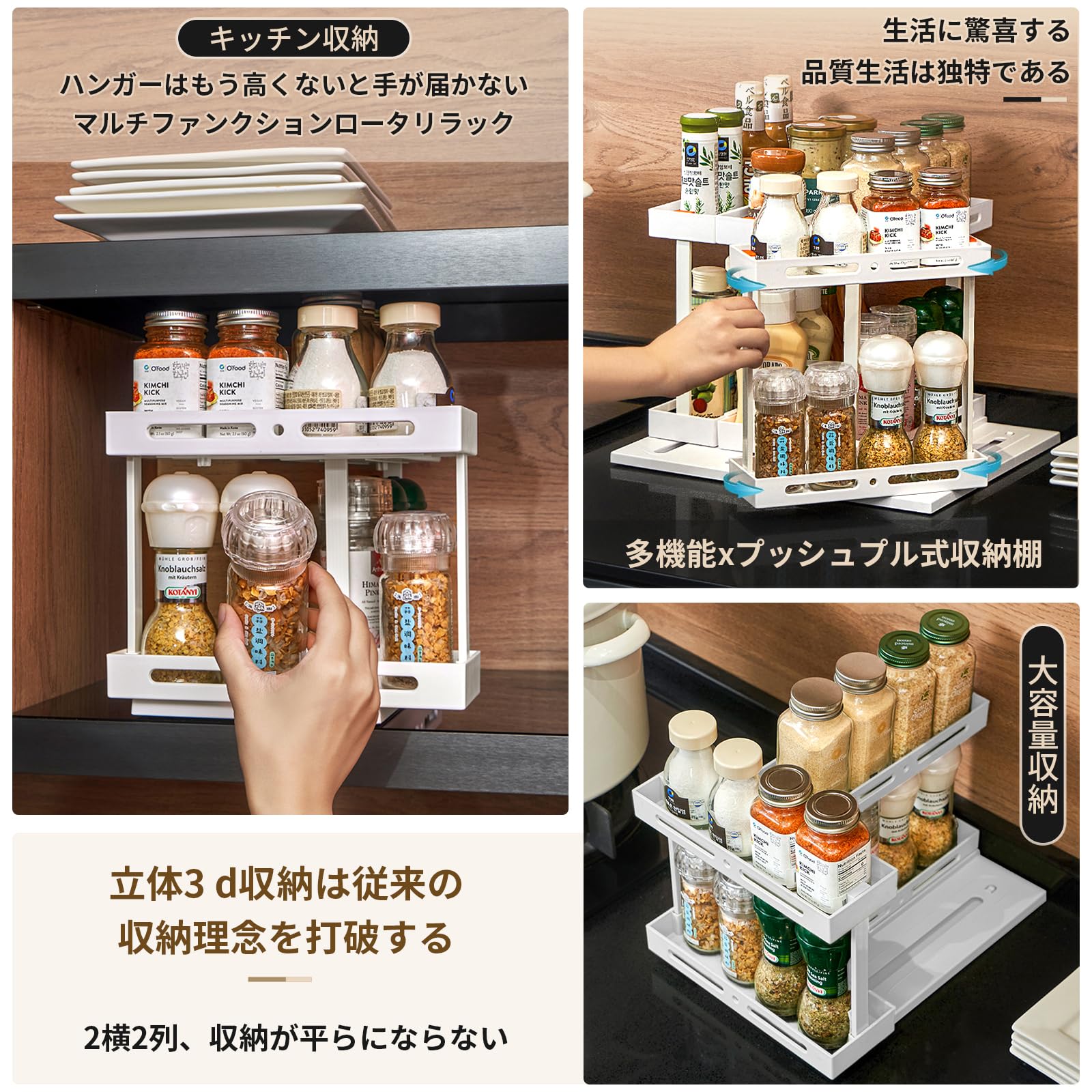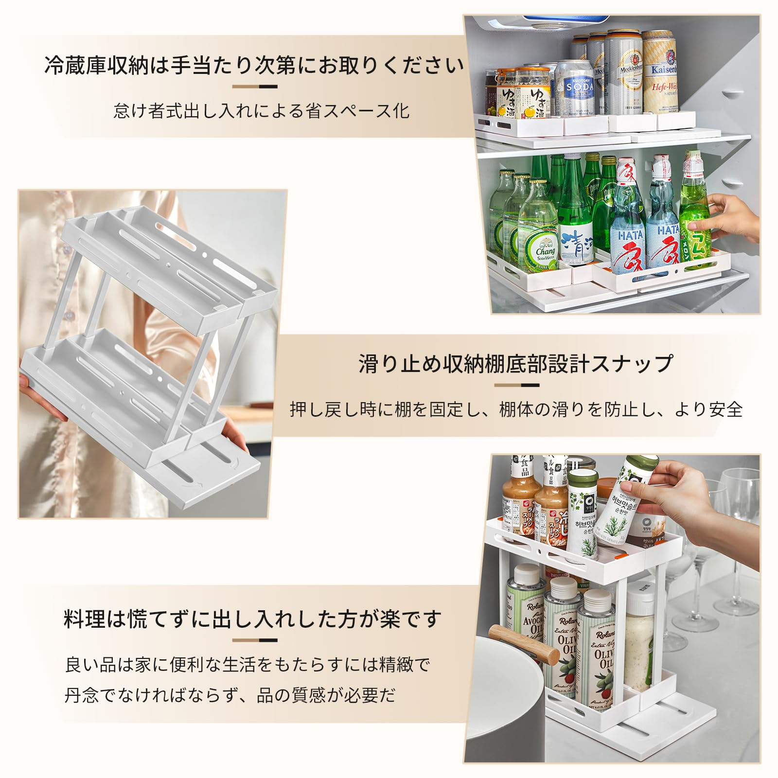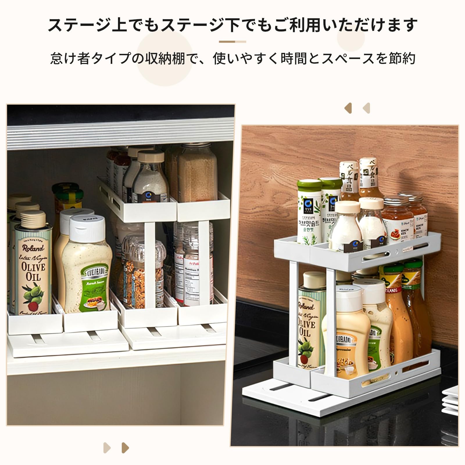SmartMaster 収納 スライド 2段 高さ20 CM 引き出し式 隙間収納 調味料収納 収納ラック 2段 スリム スライド テーブル調味料収納棚 回転可能 便利で取りやすい 組み立てが簡単 キッチン調味料化粧品オフィス用 ホワイト