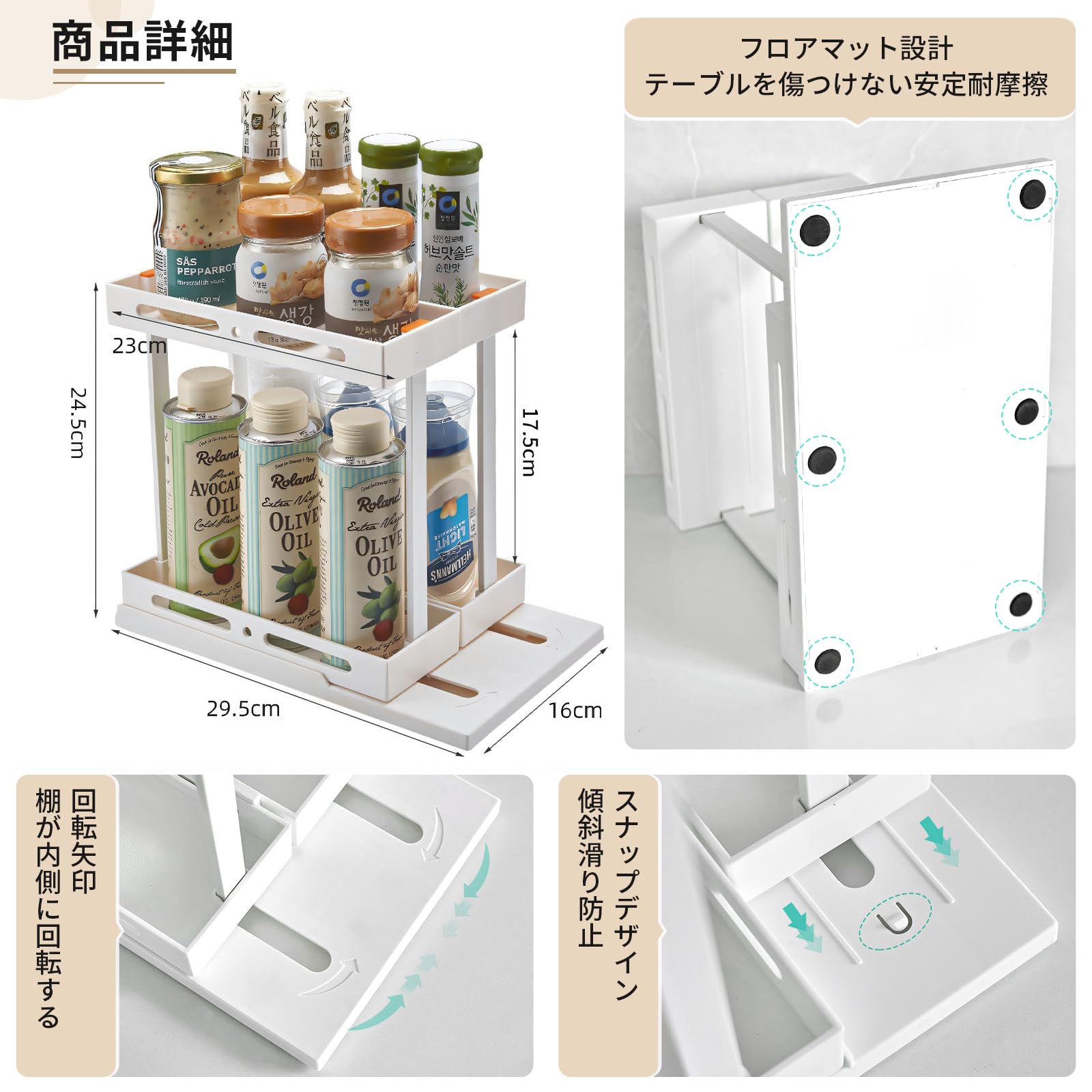 調味料ラック 回転ラック 2段式 大容量 壁掛け水切りかご 防汚 防錆 省スペースラック ステンレス フック付き 組み立て簡単 伸縮式 滑り止め お風呂 浴室 台所 収納棚