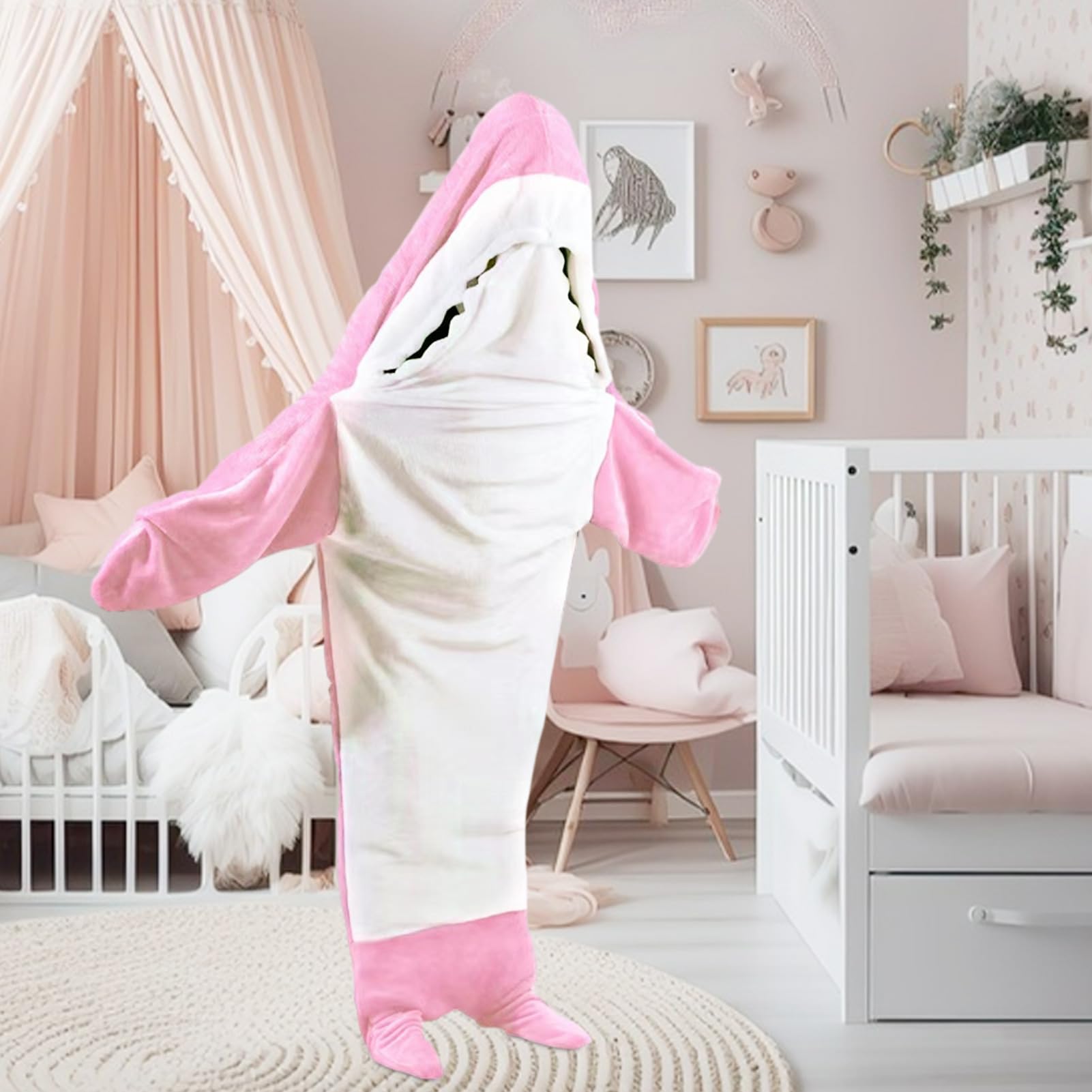 SUNMOOH 着る毛布 鮫 サメ パジャマ 寝袋 子供 大人 女性 男性 増厚版 シャークブランケット コスプレ shark blanket 冬 防寒 保温 冬服 室内服 部屋着 お昼寝毛布 きぐるみ 冷房対策 誕生日 クリスマス プレゼント(210 cm, ピンク)