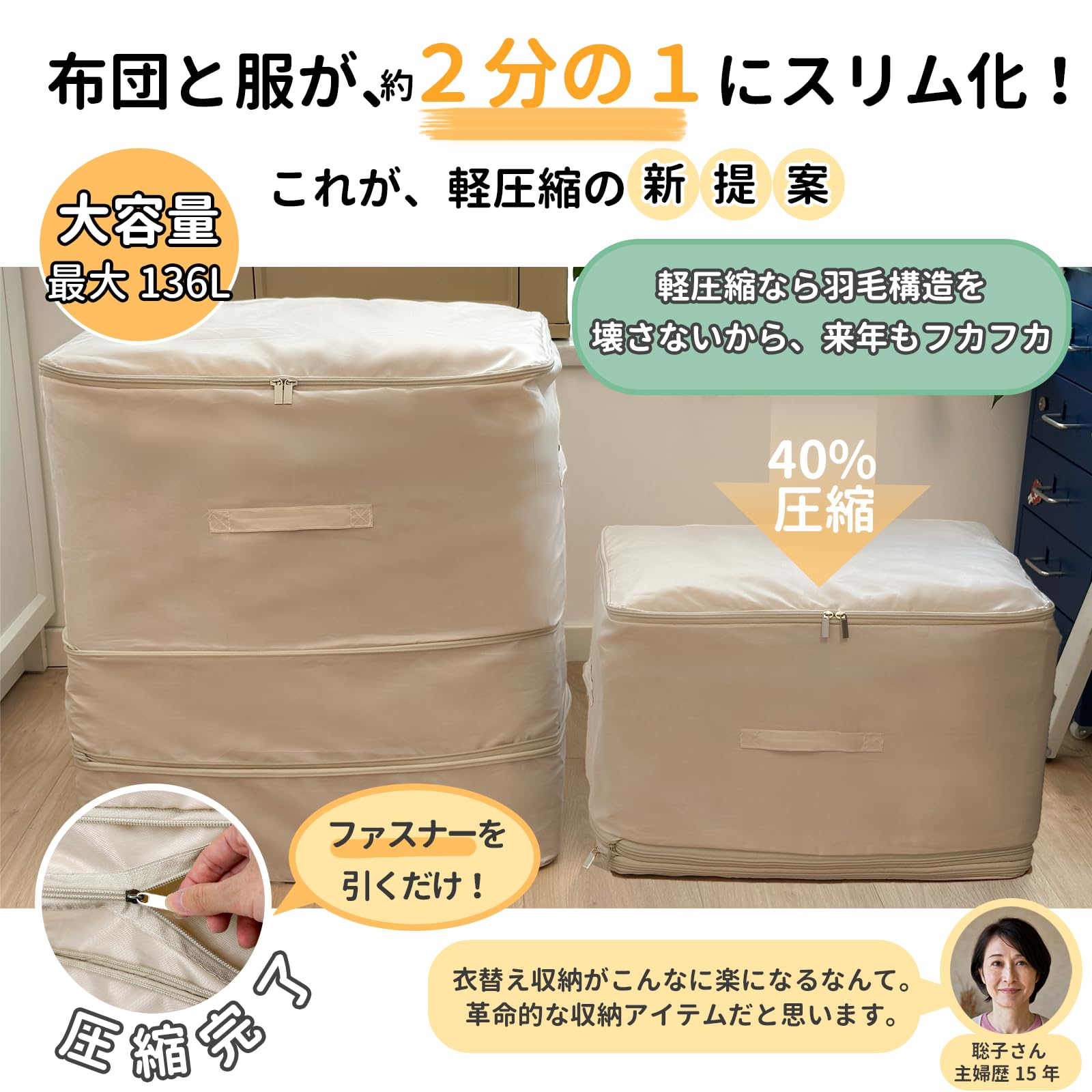 【圧縮袋掃除機不要】羽毛布団 収納袋 衣類収納ボックス 大容量 布団圧縮袋 掃除機不要 洋服収納ケース 衣類 収納ケース 衣装ケース 収納バッグ(MENGGA/タンス/クローゼット/押入れ/引越し/衣替え/ベッド下収納/ぬいぐるみ)