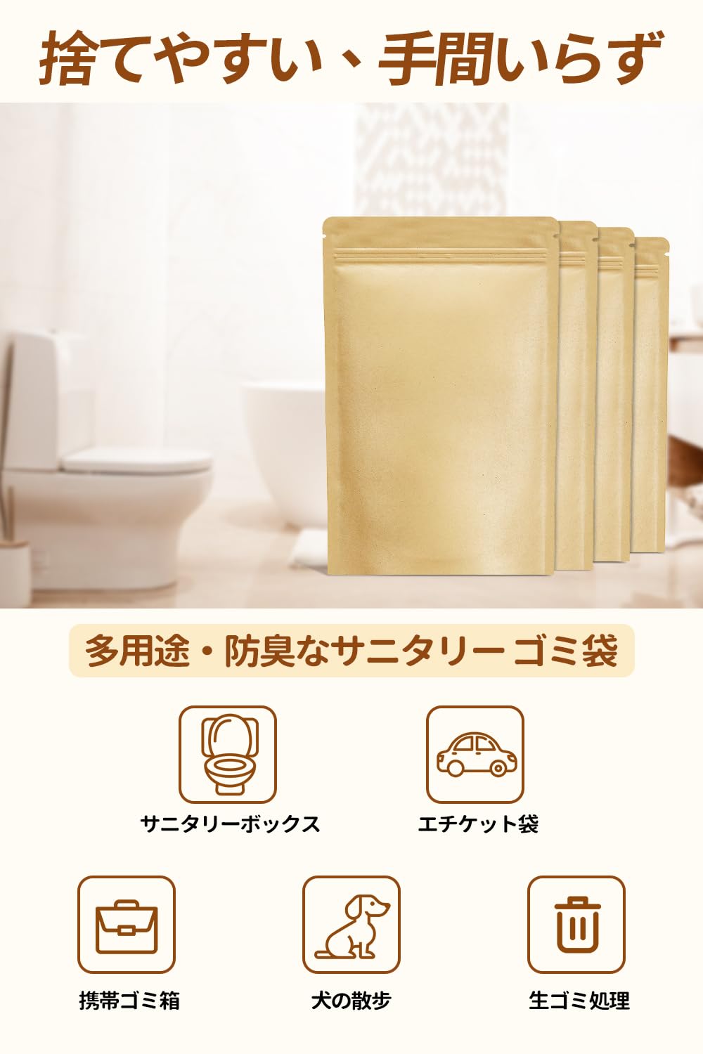 【防臭性能高】内侧贴有铝制自立式防臭袋。 外侧的牛皮纸一起感受到厚度和结实感。 作为卫生包可以在这个地方扔掉,从外面完全看不见,令人安心。 【易于丢弃,省时】这款卫生用品的垃圾袋有厚度,可自立,使用方便。 之后可以丢弃,非常轻松。 使用方便:多种尺寸可供选择。 每包装30片装防臭袋、宽18厘米、长30厘米。 尺寸小巧,携带方便,大号尺寸非常适合家庭使用。 附带拉链,一次性使用非常方便。 [多功能使用] 将卫生巾放入包内,可代替小包携带。 用于将宠物排泄物丢弃,用于处理孩子的粪便。 可以放在包里携带。 可以放入垃圾等,放入垃圾收集日,方便使用。 【卫生用品垃圾袋的放心保证】 Yeantdac 购买的卫生用品垃圾袋有12个月质量保证。 万一商品不合格、请随时与我们联系。