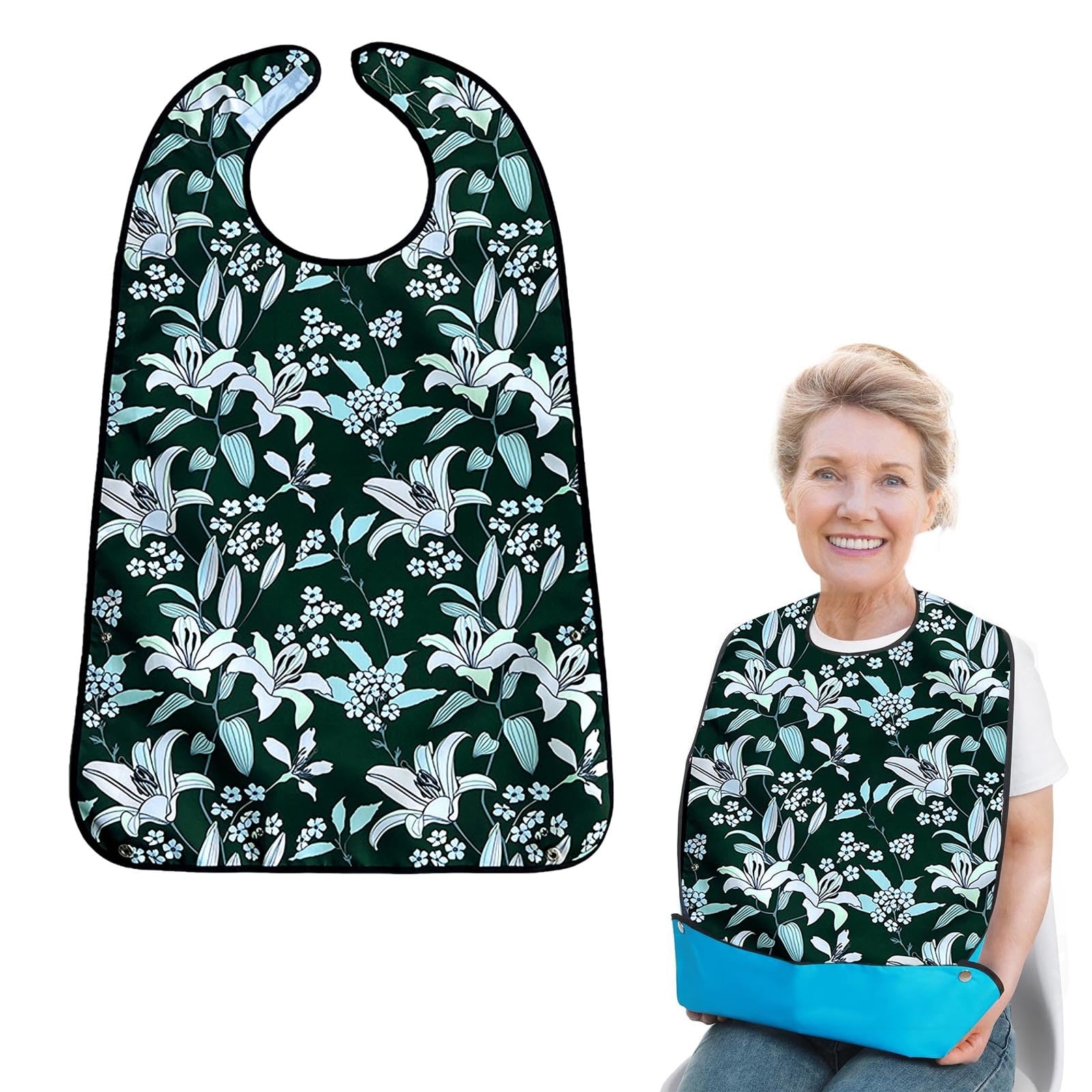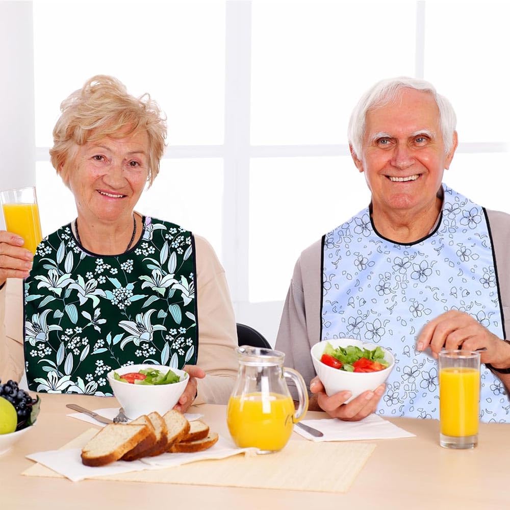 1.高品質のポリエステル生地を使用した、高齢者向けの食事用エプロン。防水性、オイル対策、汚れに強く、洗いやすい特徴を備えており、食事中に衣服が清潔で整っていることを保証します。