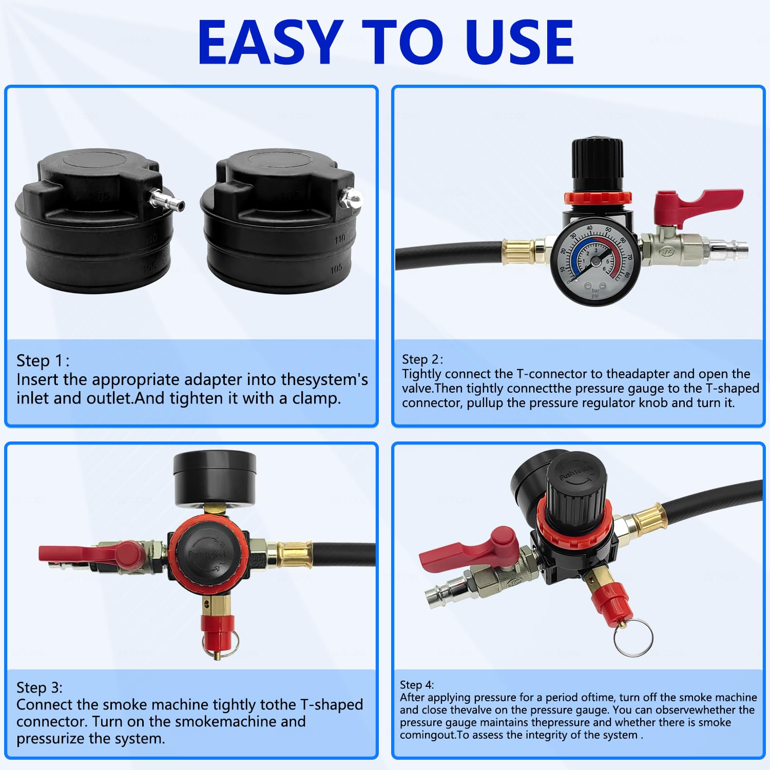 な漏れ検出 ターボブーストリークテスターは、システムに圧力をかけ、付属のアダプターを使用してエアリークを確認することで、ターボエンジンの性能低下を防ぎ、簡単に漏れを見つけることができます。