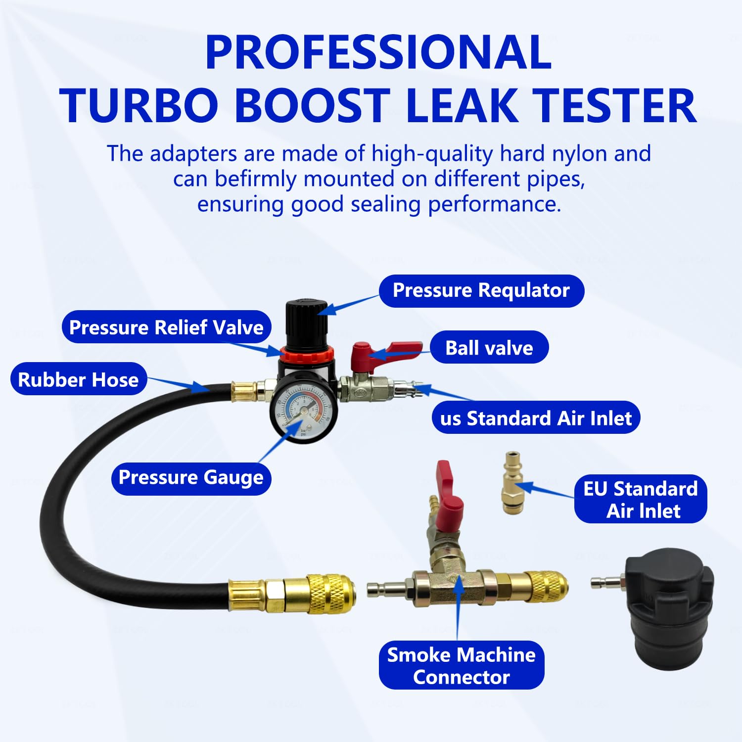 高品質素材 高品質なナイロンと金属素材で作られたこのターボシステムリークテスターは、摩耗に強く、厳しい自動車テストの条件にも耐えられる耐久性を誇ります。