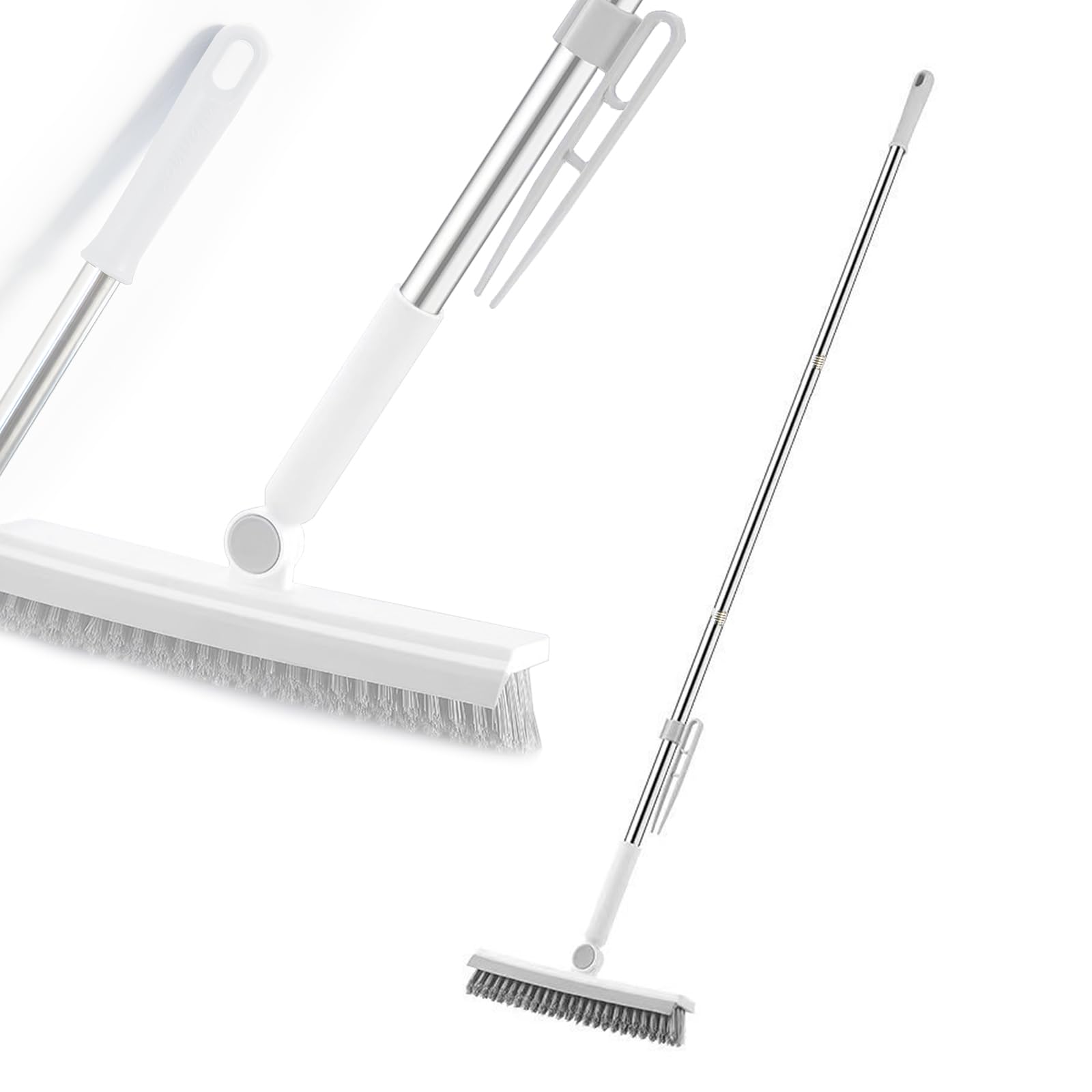TongWey デッキブラシ 2in1 水切りワイパー ベランダ 掃除用ブラシ タイルブラシ 屋外 室内 3段長さ伸縮 デッキブラシ 風呂掃除 耐久性MAX 浴室/風呂場/ベランダ/玄関/床/庭園/歩道用 掃除用品 家庭用 業務用 掃除ブラシ (ホワイト)
