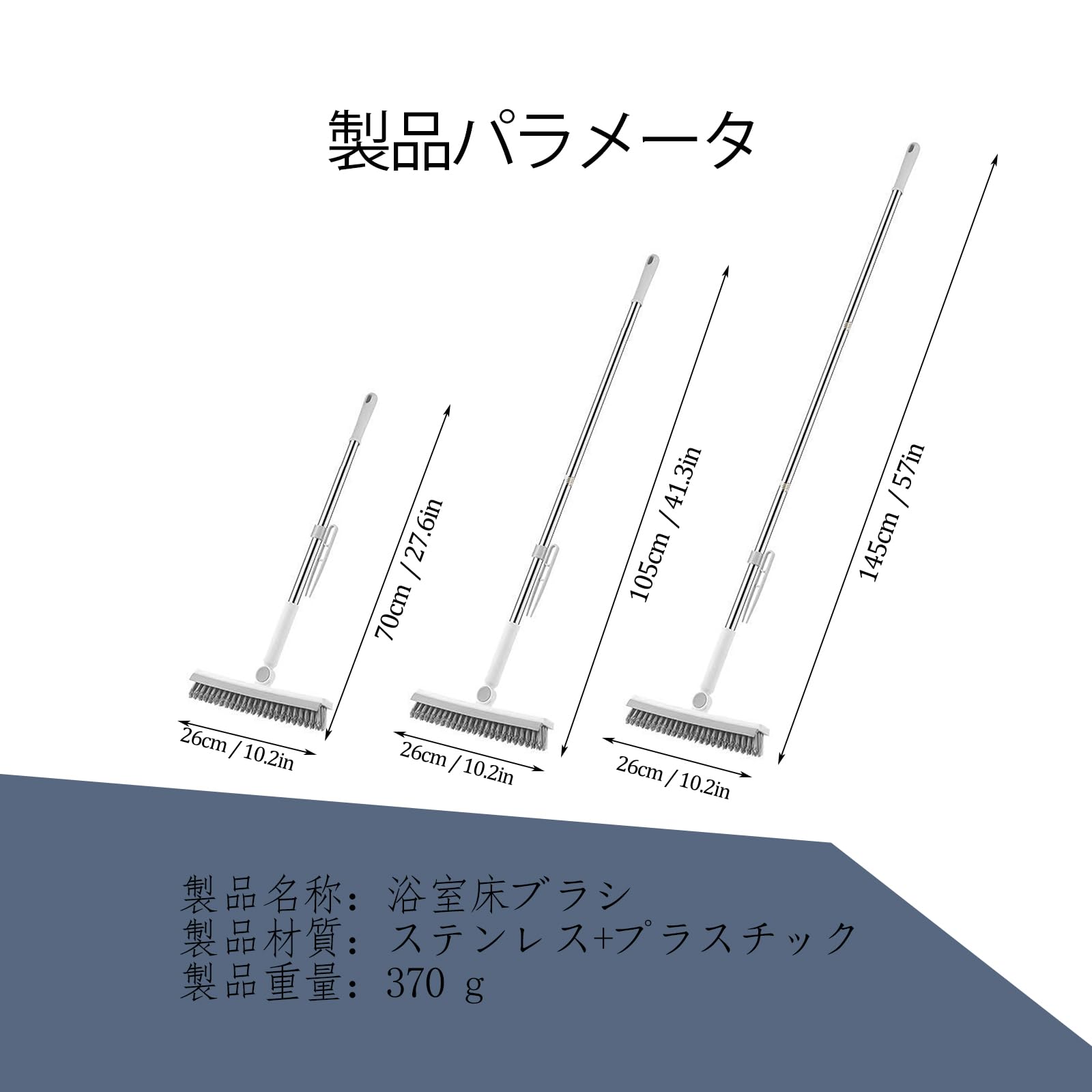 デッキブラシ 掃除用ブラシ 3in1 145cm ウォータースクレーパー 水切りワイパー 3段長さ調節可能 耐久性 ベランダ/玄関/床/屋外/庭園/お風呂にも適用 プールといっ掃除用品 (ホワイト)