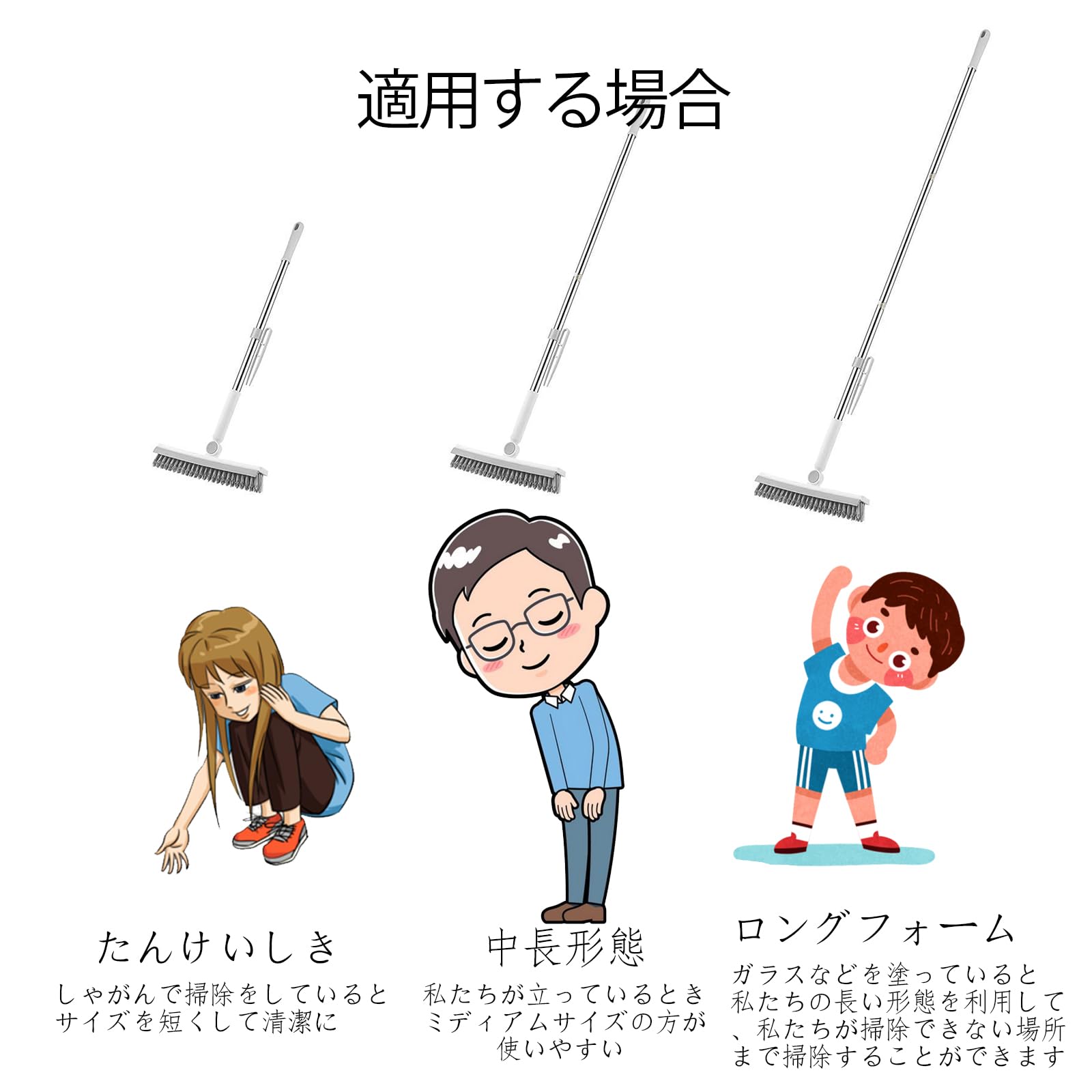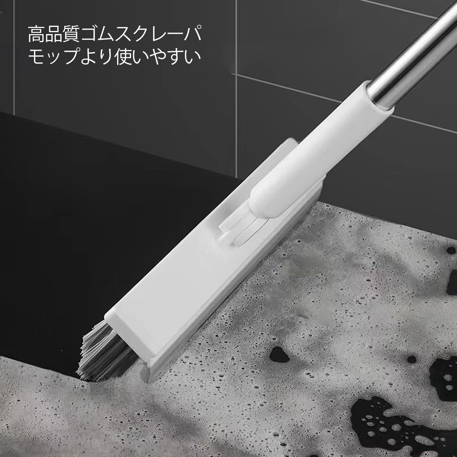 TongWey デッキブラシ 2in1 水切りワイパー ベランダ 掃除用ブラシ タイルブラシ 屋外 室内 3段長さ伸縮