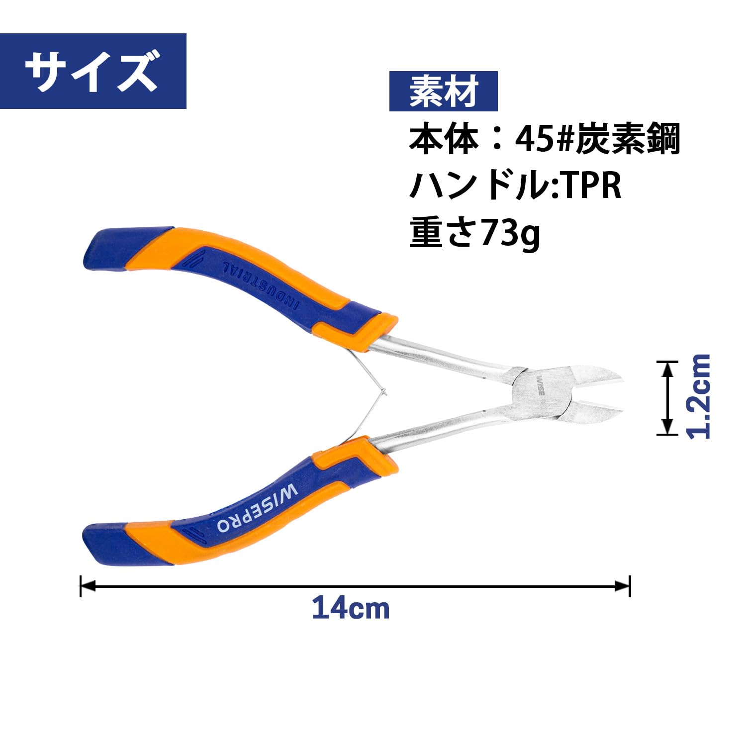 钳子附带2个锐利的切割刀。 用于切割细金属钢丝和宝石钢丝等普通闪光切割。 软质钢丝、铝、软质合金、电缆扎带、吉他弦、修边塑料零件、闪钻等软质材料。 另外,作为室内装饰、机械作业、珠宝制作道具也广泛使用。 超长牵引绳:可避免障碍物,在狭窄的空间中提供帮助。 钳子规格:尺寸:长14厘米、开口宽12毫米。 重量:73克。 材质:金属部分:45#碳钢、手柄:TPR 带板弹簧:每个迷你超长距离钳配备了2个板弹簧,打开钳子可以直接操作。 方便快捷使用。 省力,即使在不够的地方也能轻松工作。 轻量手柄:迷你钳子非常轻巧,便于携带和操作,手柄采用柔软的TPR/PP材料,贴合手部,手柄不易打滑,容易抓握。 材质・保养:迷你钳主体为45#碳钢制作而成。 高周v波淬火和最终表面镀镍处理,精密钳子免受生锈和腐蚀,提高了耐久性。 保养:STEP-1、使用后可以擦拭污渍。 STEP-2、防止生锈,涂上薄油。 STEP-3,可放入工具箱或袋子等。 STEP-4、请避免存放在高温高湿处
