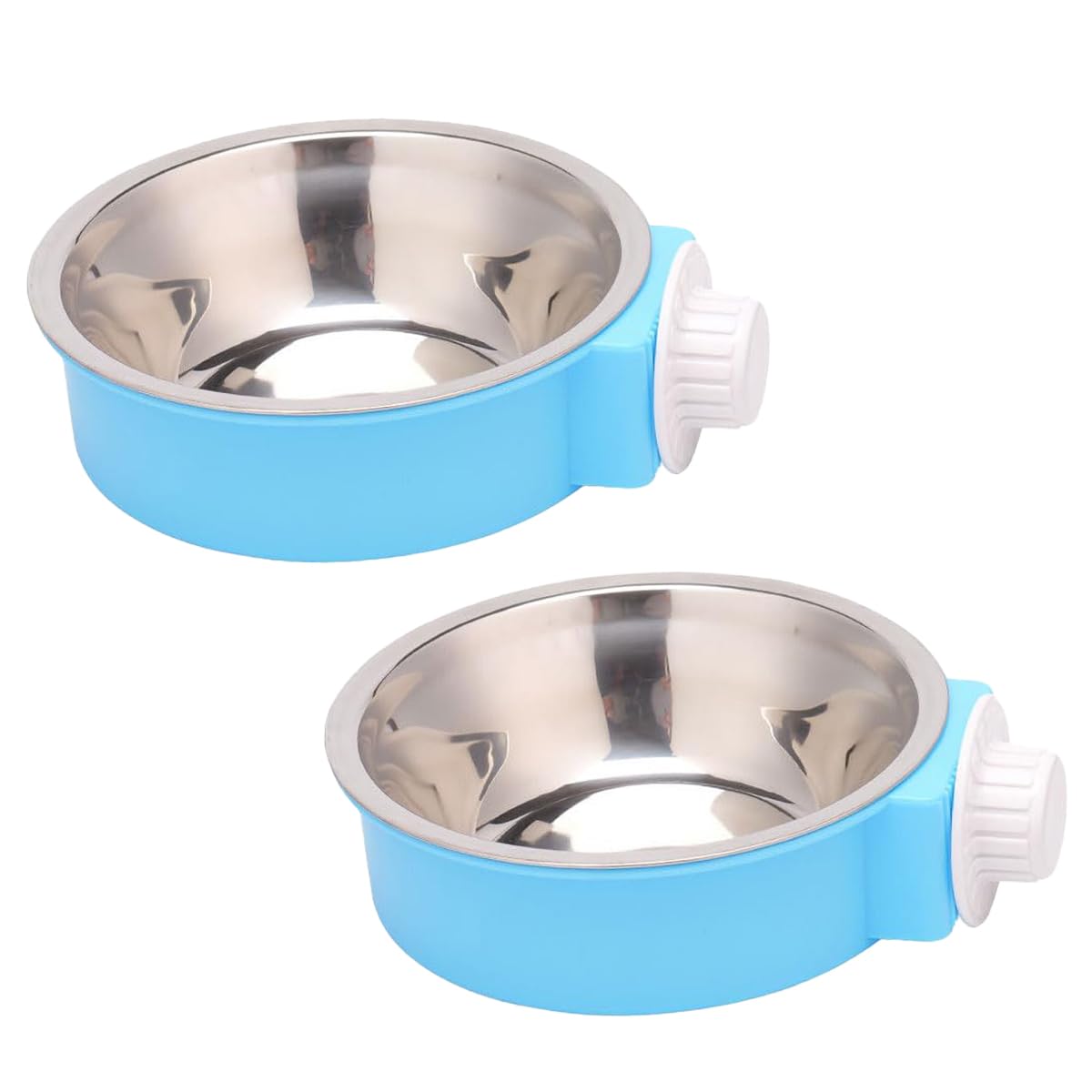 ペットぶら下げボウル ペットボウル ハンガー ゲージ用 ペット食器 餌入れ 固定 ヘルスウォーターボウル 猫 犬 うさぎ 小動物用 食器 (青色*2, S)