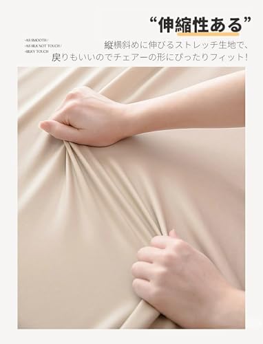 縦横斜めに伸びるストレッチ生地で、チェアの形状にぴったりフィット、装着も脱着も非常に簡単、女性一人の力でも問題なし。
