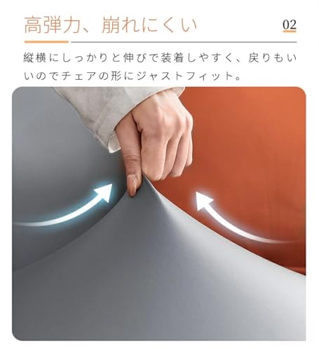 縦横斜めに伸びるストレッチ生地で、チェアの形状にぴったりフィット、装着も脱着も非常に簡単、女性一人の力でも問題なし。
