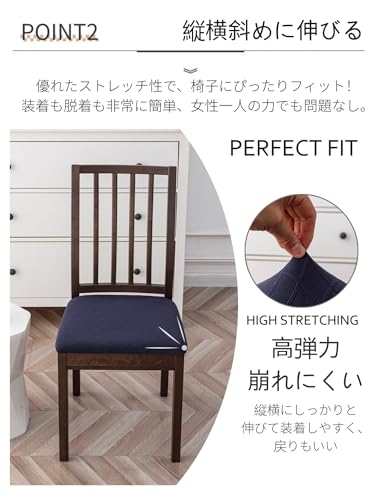 チェアカバー 撥水 1枚 椅子カバー 座面用 ダイニングチェアカバー 椅子クッションカバー デスクチェアカバー 防水シートカバー 高弾力 汚れ防止 無地 防水 洗える さらり フィット ストレッチ座面カバーオフィスチェアカバー (ネイビー)