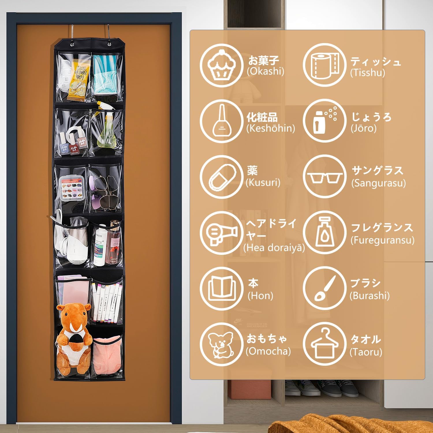 TATIU ウォールポケット 壁掛け 収納 ドアかけ 5段 ブラック
