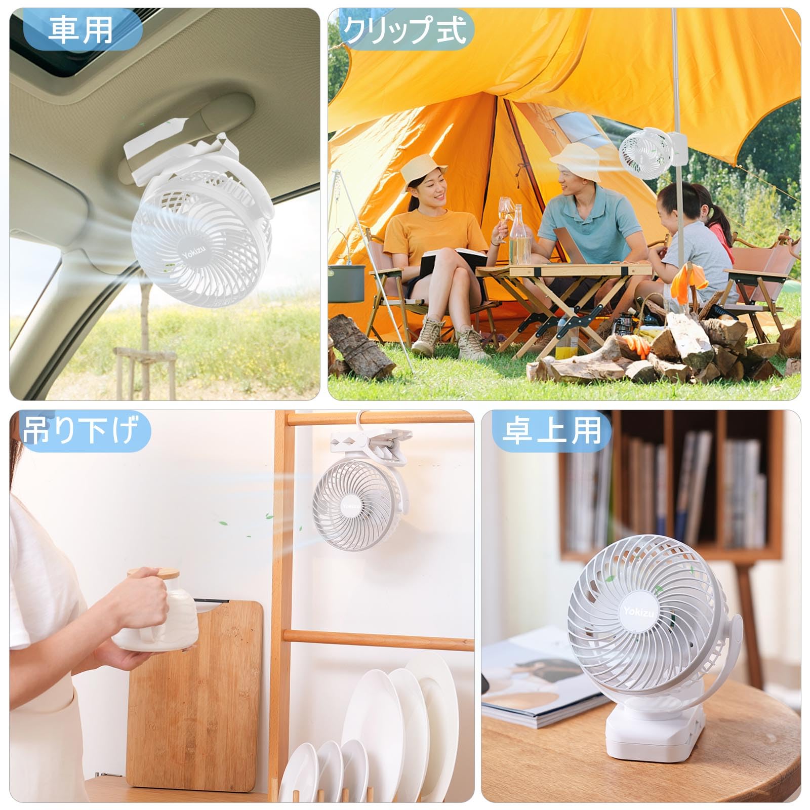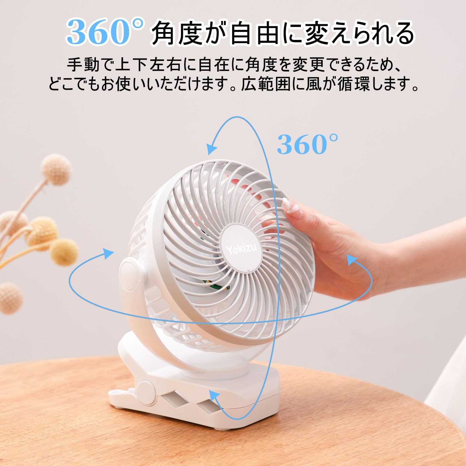 小型扇風機 自動首振り 左右360° 充電式 10000mAh 卓上 usb クリップ ミニ扇風機 リモコン付き 切タイマー 風量3段階 リズムモード サーキュレーター LEDライトコンパクト 車用 キャンプ アウトドア 熱中症対策 長時間連続使用 ホワイト