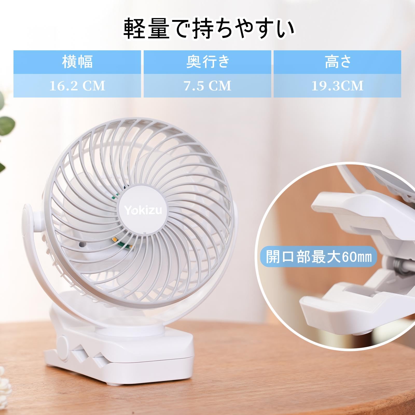 【自動首振り&10000mAh】 卓上扇風機 充電式 静音 クリップ 小型扇風機 USB 360度角度調整 風量無段階調節 最長107時間連続使用 LEDライト 強風 アロマ対応 オフィス 車 アウトドア 直径16cm ホワイト