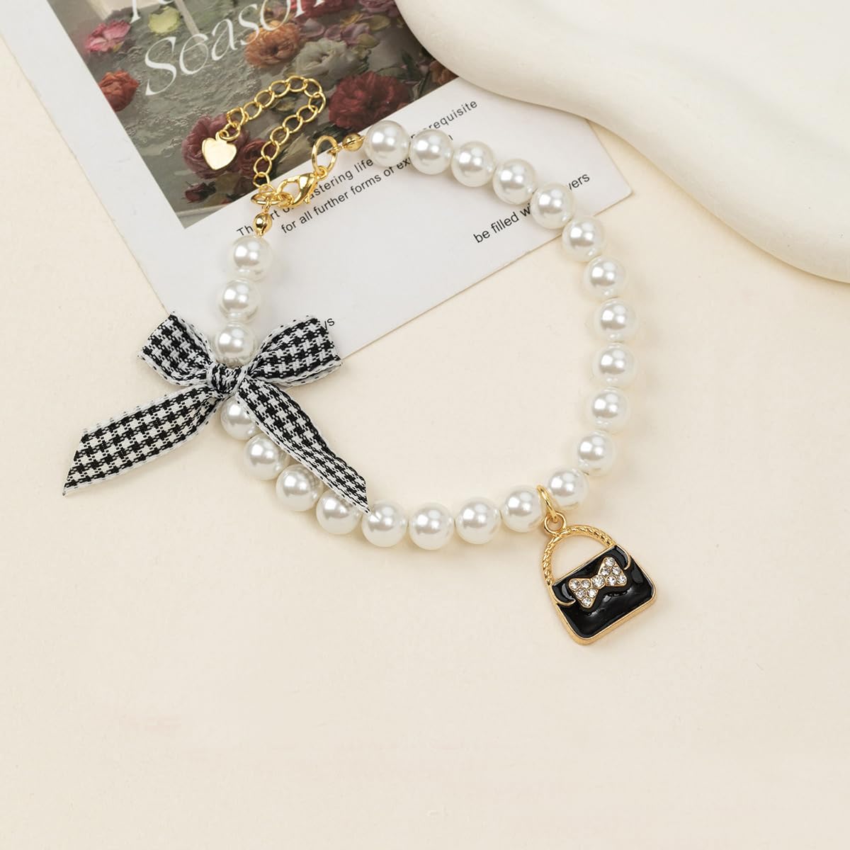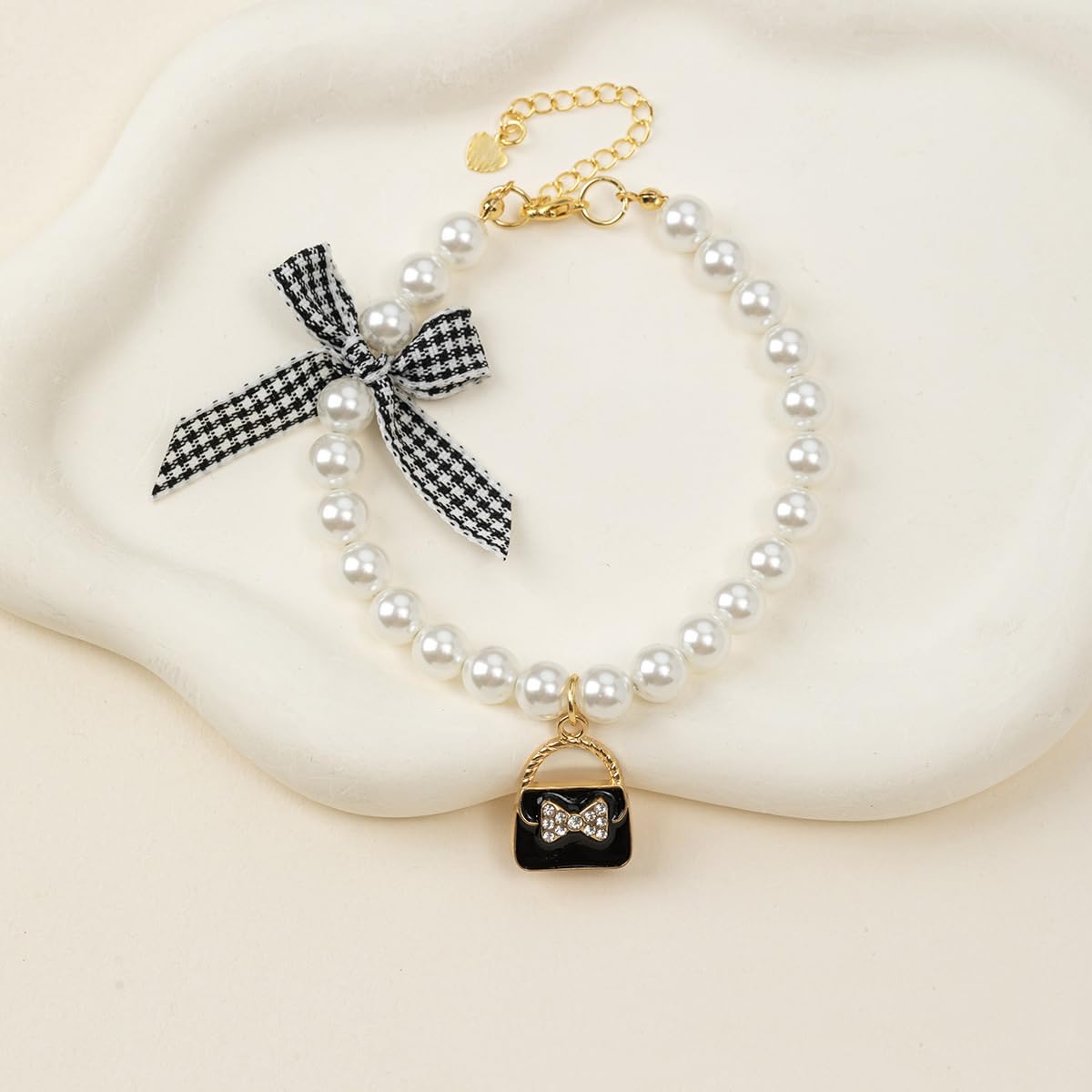 Wag&Wink ペット 首輪 犬 猫 可愛い 調節可能 パール 蝶結び 黒 ピンク S/M/Lサイズ 日常 おしゃれ プレゼント 軽量 安全 高級 典雅 (ブラックの蝶結び, S)