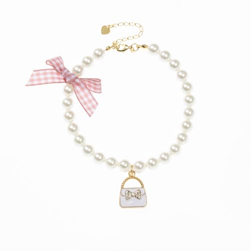 Wag&Wink ペット 首輪 犬 猫 可愛い 調節可能 パール 蝶結び 黒 ピンク S/M/Lサイズ 日常 おしゃれ プレゼント 軽量 安全 高級 典雅 (ピンクの蝶結び, S)