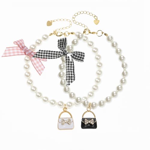 Wag&Wink ペット 首輪 犬 猫 可愛い 調節可能 パール 蝶結び 黒 ピンク S/M/Lサイズ 日常 おしゃれ プレゼント 軽量 安全 高級 典雅 (ブラックの蝶結び, S)