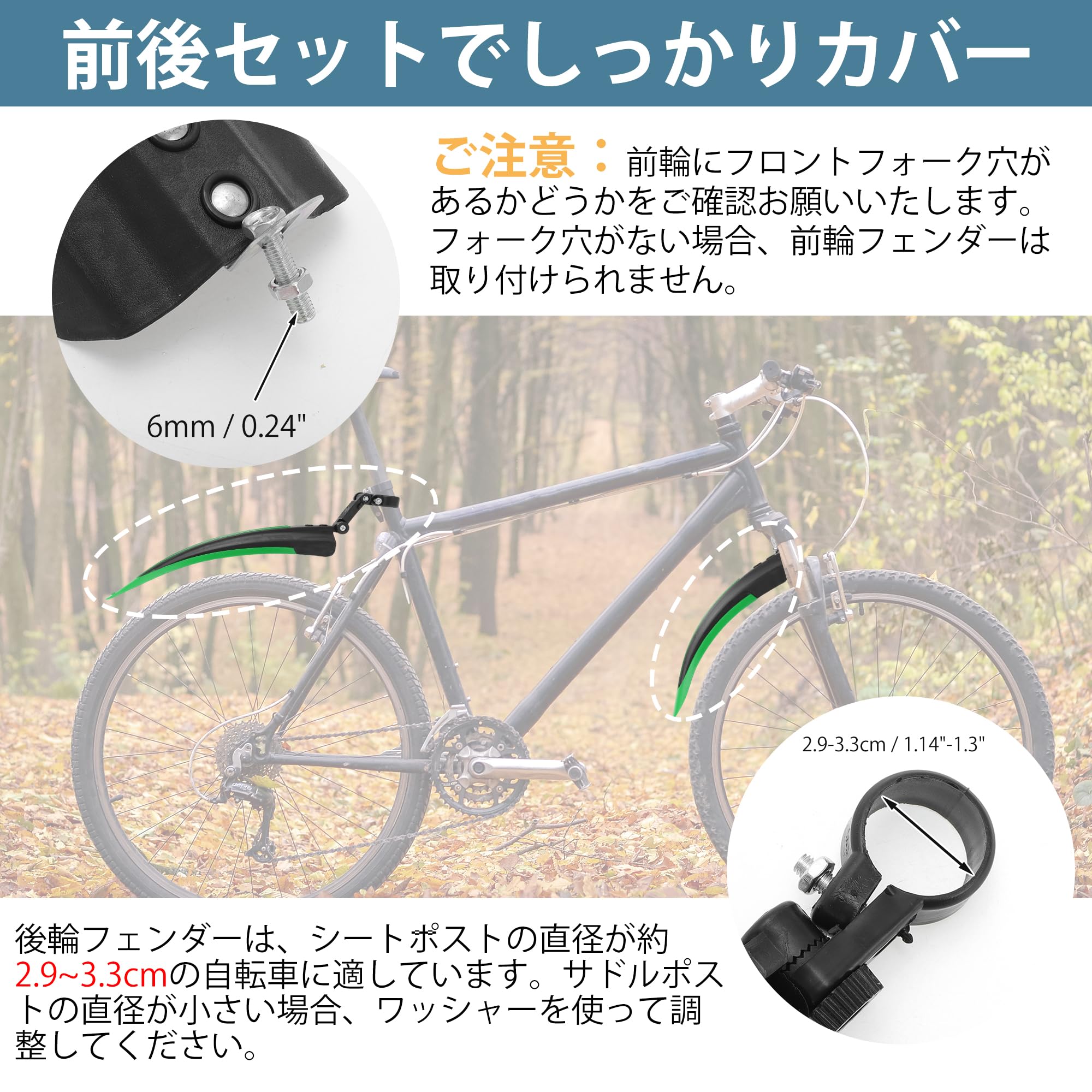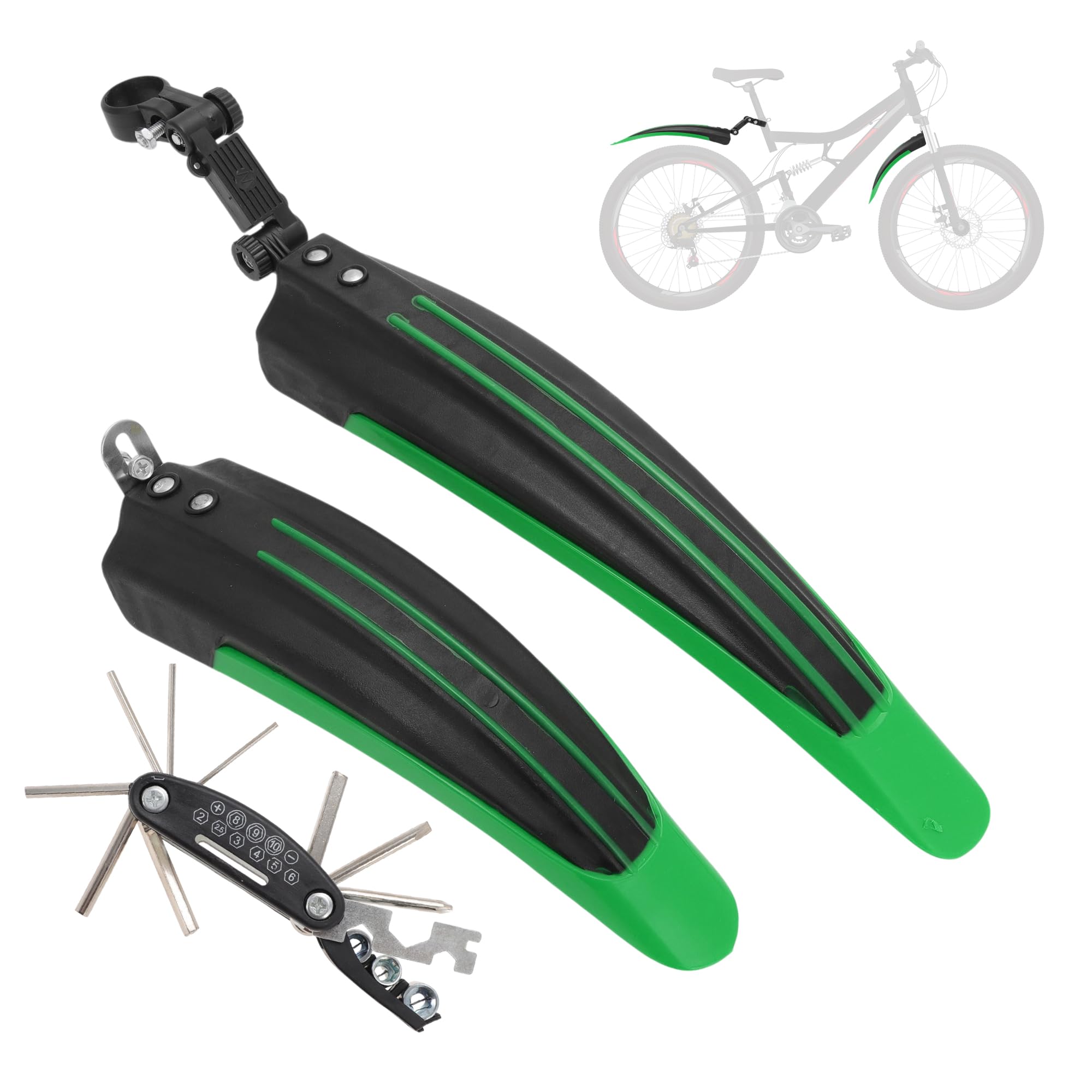 BULLSPANN 自転車フェンダーセット 自転車サイクリングタイヤフロントリアマッドガード サイクリングバイクフェンダー ツール付き 厚手マッドガード ロードバイク マウンテンバイク用 グリーン