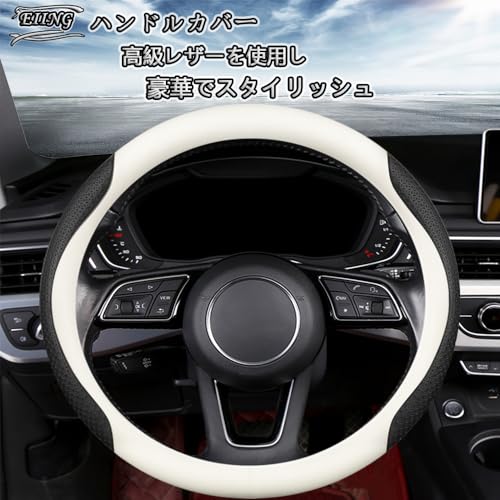 車 ハンドルカバー かっこいい ステアリングカバー 軽自動車 事故防止 滑らない 高級 ギフト 取り付け易い (ホワイト) sサイズ