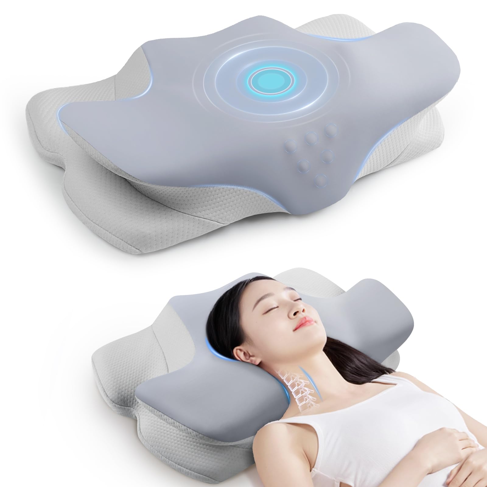 MyeFoam 枕 安眠 肩がラク 低反発 まくら 凹型の中空設計 頭が安定し 首や肩の負担にならない 高さ調整可 仰向き 横向き プレゼント 洗える グレー